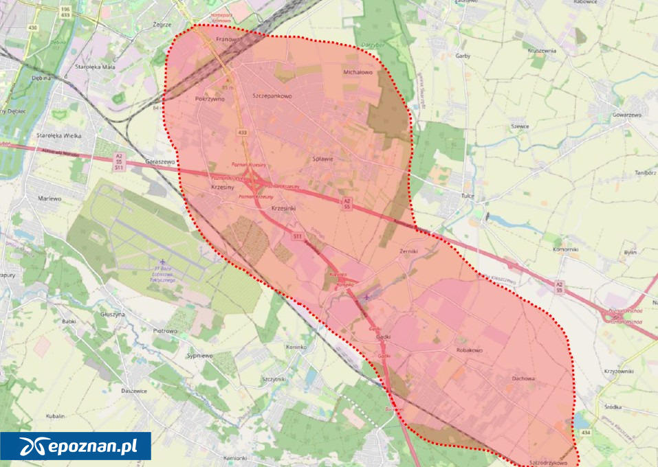 Obniżone ciśnienie lub czasowy brak wody może wystąpić na obszarze: Franowa, Szczepankowa, Spławia, Krzesin i Pokrzywna, a także na terenie gminy Kórnik: Gądek, Robakowa, Dachowy, Szczodrzykowa i Żernik.