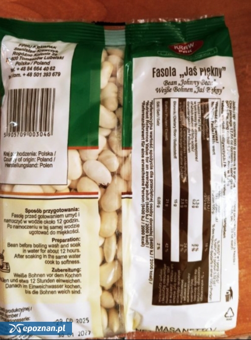 "F.P.H.U. "KRAWPAK" Stanisław Krawczyk, Rogóźno Kolonia 29, 22-600 Tomaszów Lubelski po otrzymaniu wiadomości o zakwestionowaniu partii Fasoli "Piękny Jaś" wdrożył procedurę wycofania produktu z rynku i poinformował swoich odbiorców o zaistniałej sytuacji rozpoczął proces wycofywania przedmiotowej fasoli"- dodano.