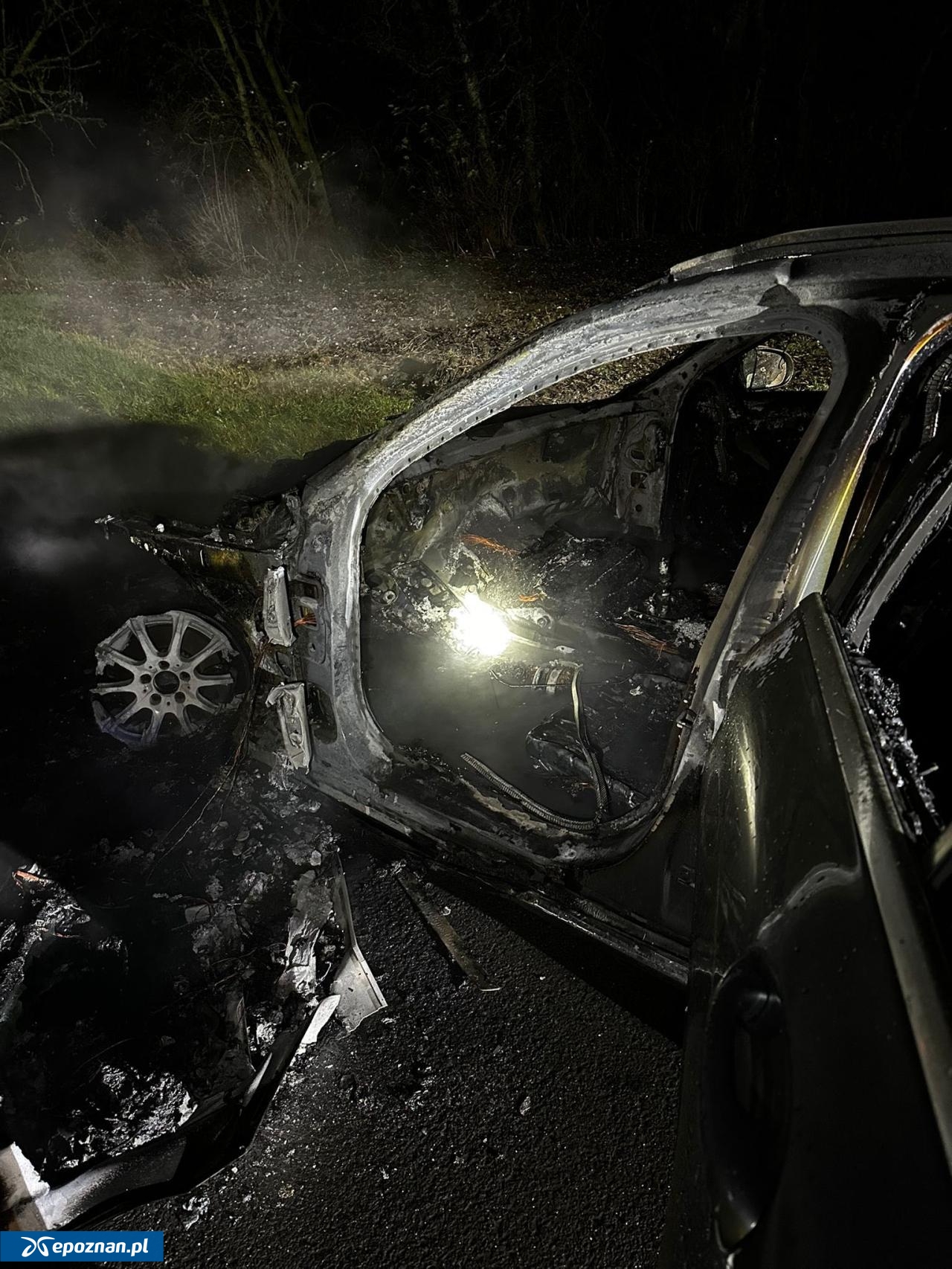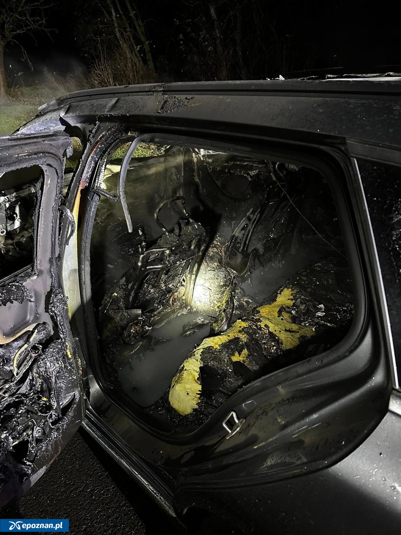 Nocny pożar auta pod Poznaniem. Spłonęło doszczętnie
