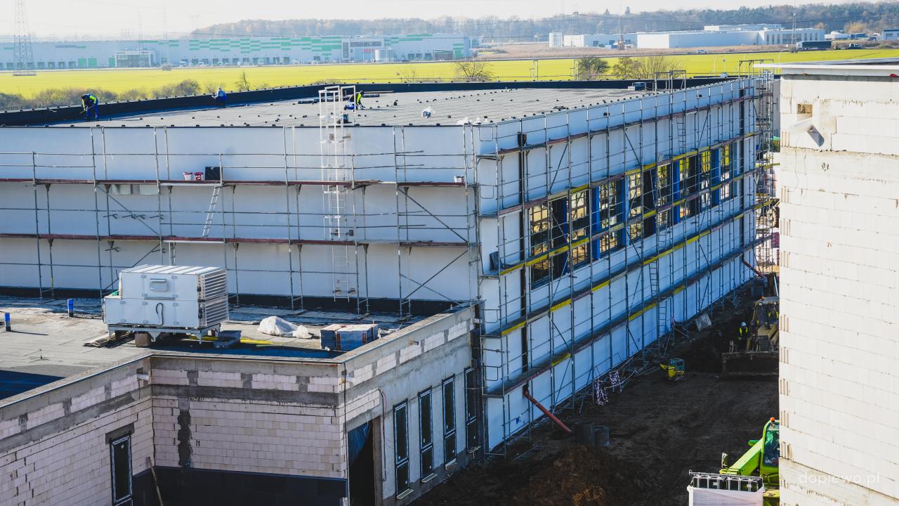 Podkreślono, że rozbudowa placówki to największa inwestycja realizowana obecnie przez Gminę Dopiewo. W ramach projektu powstaje nowoczesny, trzykondygnacyjny budynek dydaktyczny połączony z istniejącą szkołą oraz pełnowymiarowa hala sportowa. Nowa infrastruktura pozwoli na przyjęcie kolejnych 600 uczniów, co oznacza podwojenie obecnej liczby, która już dziś sięga blisko 600. W budynku zaplanowano 23 sale lekcyjne, pomieszczenia specjalistyczne - m.in. gabinet logopedy i pedagoga - a także przestronną świetlicę, jadalnię, zaplecza administracyjne, sanitarne oraz techniczne. Hala sportowa zostanie wyposażona w salkę fitness, pokój dla trenerów, magazyn sprzętu sportowego oraz szatnie.