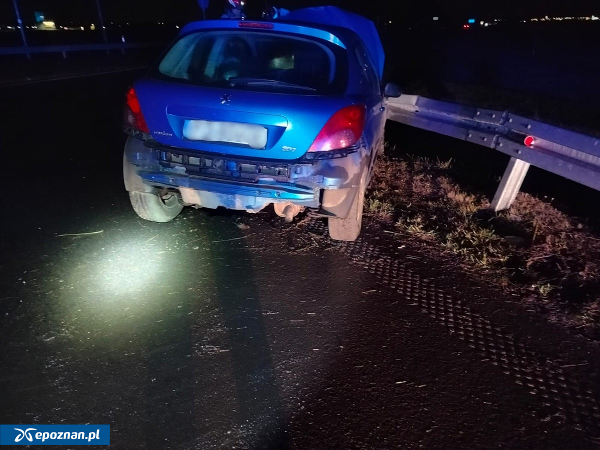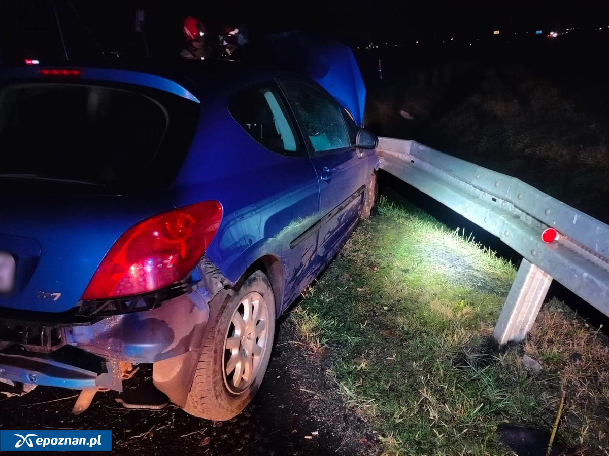 Samochód zatrzymał się dopiero na barierkach energochłonnych.