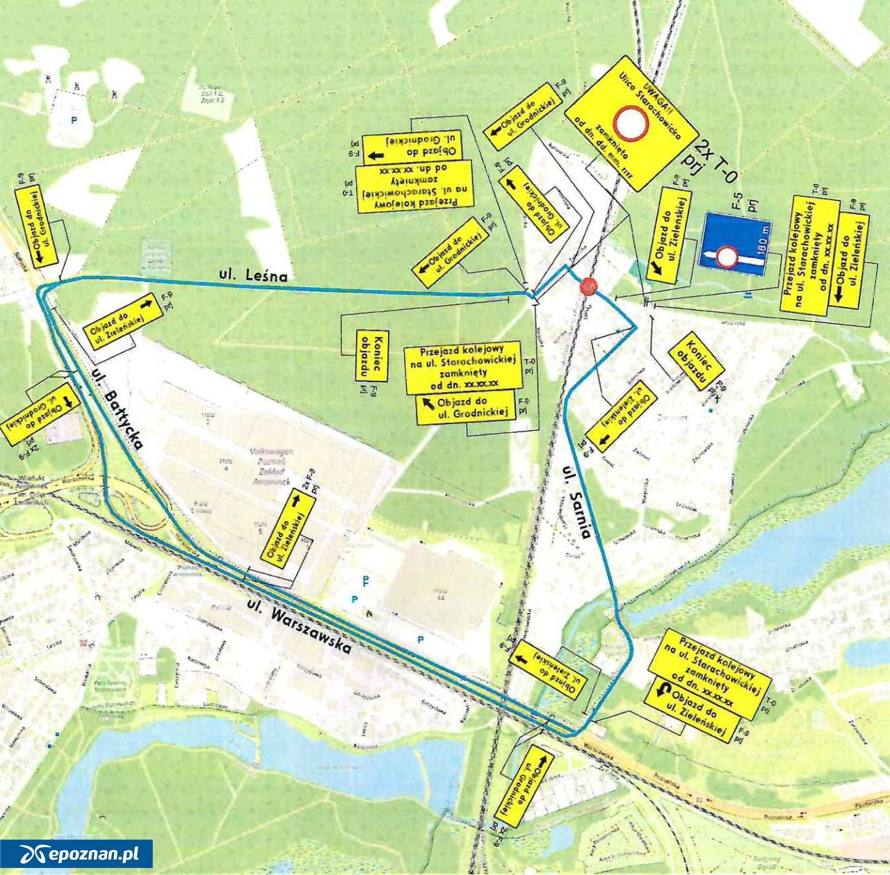 Z przejazdu nie będą mogli korzystać zarówno kierowcy, jak i piesi. - Objazd wyznaczono ulicami: Sarnią, Sośnicką, Warszawską, Bałtycką, Leśną i Zielińską. Osiedlom na Zielińcu, położonym na zachód od przejazdu kolejowego, zostanie udostępniony dojazd ul. Leśną od DK 92 - dodaje.
