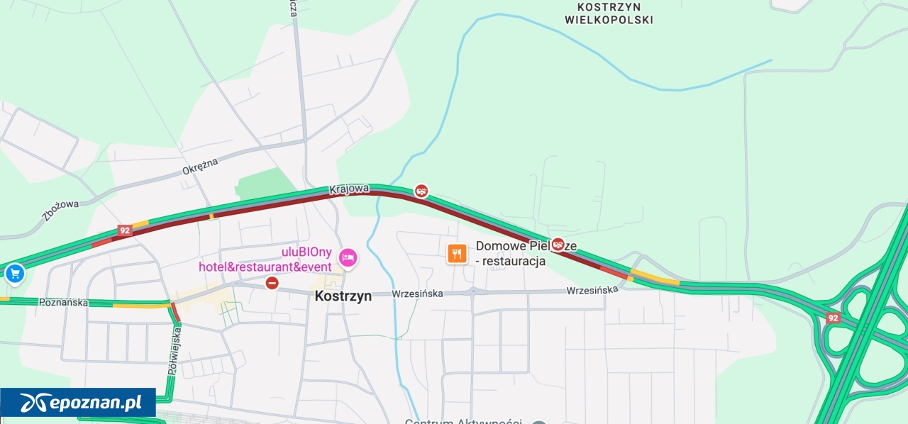 Dyżurny wielkopolskich strażaków potwierdza, że około 12:40 do służb dotarło zgłoszenie o zderzeniu kilku pojazdów na DK92 w Kostrzynie. Wypadek miał miejsce w rejonie skrzyżowania z ulicą Wrzesińską. - Pod opieką załogi karetki znajdują się dwie osoby. Zablokowany jest jeden pas ruchu - tłumaczy.