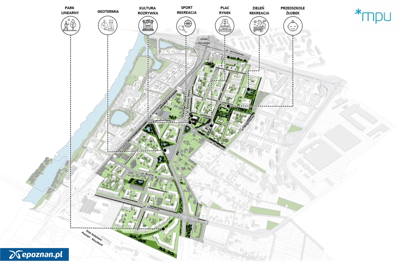- Trzonem nowego układu urbanistycznego będzie projektowana droga zbiorcza - tzw. ul. Nowa Romana Maya. Jej przebieg został poprowadzony w sposób pozwalający w maksymalnie możliwym stopniu ominąć istniejącą zabudowę jednorodzinną. Nowa oś komunikacyjna zostanie uzupełniona układem ulic obsługujących kolejne kwartały zabudowy. Kluczowym elementem wpływającym na funkcjonalność nowej dzielnicy jest dostępność transportu zbiorowego. W rejonie obowiązywać będzie dogodny dostęp do istniejącej sieci tramwajowej, w tym przede wszystkim trasy w ul. Starołęckiej oraz połączeń w ul. Hetmańskiej i ul. Unii Lubelskiej -dodają.