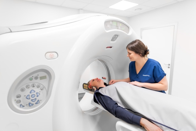 - tomografia komputerowa - do dyspozycji pacjentów jest dokładny i wydajny sprzęt GE Healthcare. W MEDflow pacjenci mogą wykonać między innymi TK głowy, kończyn, kręgosłupa, klatki piersiowej, jamy brzusznej i miednicy mniejszej czy tomografię zatok;