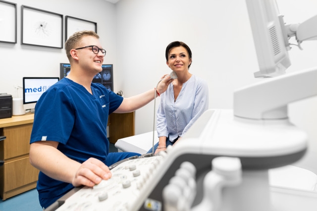 - USG - do badań ultrasonograficznych w MEDflow wykorzystuje się USG klasy premium Toshiba Aplio 500. Wyróżnia się bardzo szybkim i precyzyjnym obrazowaniem, pozwalającym na postawienie dokładnych diagnoz. Zakres badań jest szeroki i obejmuje między innymi USG piersi, prostaty, jąder, jamy brzusznej oraz mięśni, stawów, węzłów chłonnych itp. w ofercie są także badania dopplerowskie żył i tętnic kończyn górnych i dolnych.;