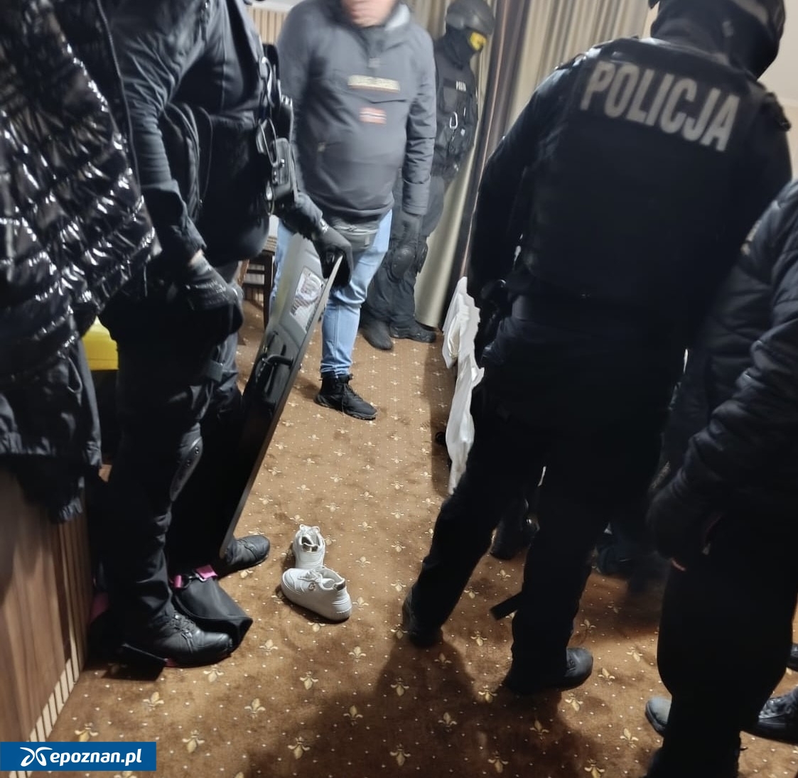"Funkcjonariusze zastali czterech 25-letnich mężczyzn z obrażeniami twarzy i ciała. Pokrzywdzeni zostali zabrani przez ratowników medycznych do szpitala. Sprawca uciekł jeszcze przed przyjazdem patrolu. W wyniku intensywnych czynności operacyjnych i procesowych policjanci ustalili miejsce pobytu mężczyzny. 2 grudnia sprawca został zatrzymany w jednym z hotelowych pokoi na terenie powiatu konińskiego. Z uwagi na agresywny charakter zdarzenia oraz informacje o możliwym posiadaniu niebezpiecznych przedmiotów, podjęto decyzję, aby policjantów Wydziału Kryminalnego wspierała Grupa Realizacyjna"- informuje asp. Sylwia Król, oficer prasowy policji w Koninie.