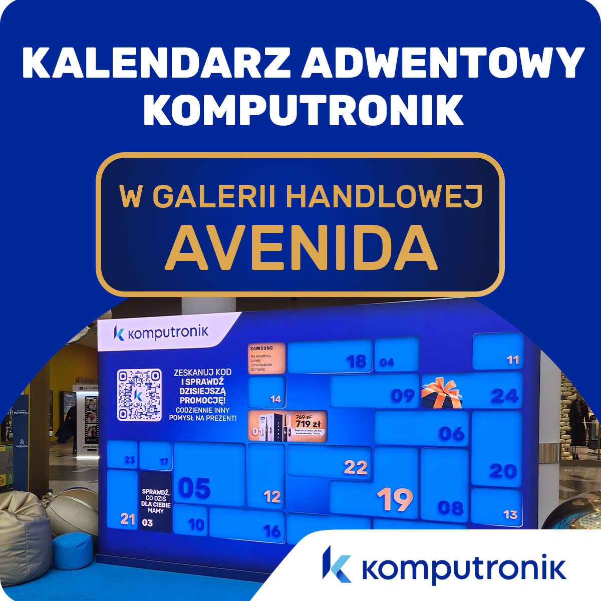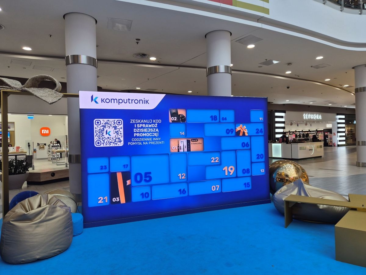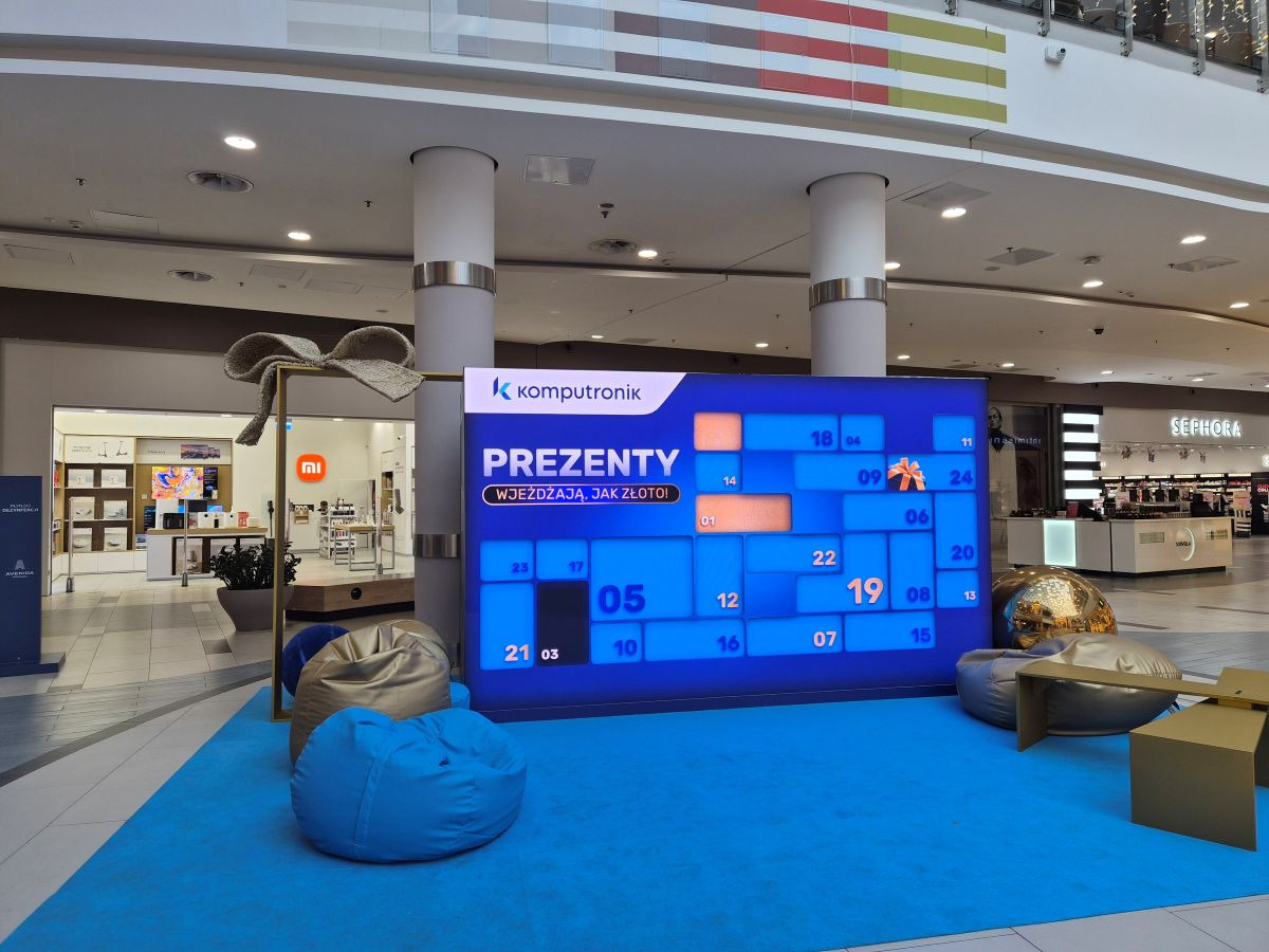 W galerii handlowej Avenida pojawiła się tajemnicza niebieska instalacja - to cyfrowy kalendarz adwentowy Komputronik, przygotowany z myślą o świątecznym polowaniu na prezenty.