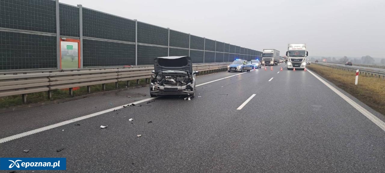 O zdarzeniu informują też strażacy z Rawicza. "Na 101 km ekspresowej piątki (jezdnia w kierunku Poznania - tuż przed węzłem Rawicz) doszło do zderzenia auta osobowego z zestawem: ciągnik siodłowy z naczepą" - przekazują. "Kierowca osobówki jest poszkodowany. Ruch w tej chwili jest wstrzymany" - dodają.