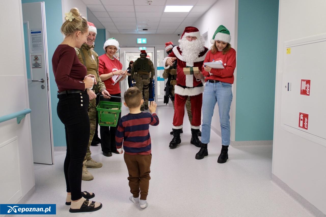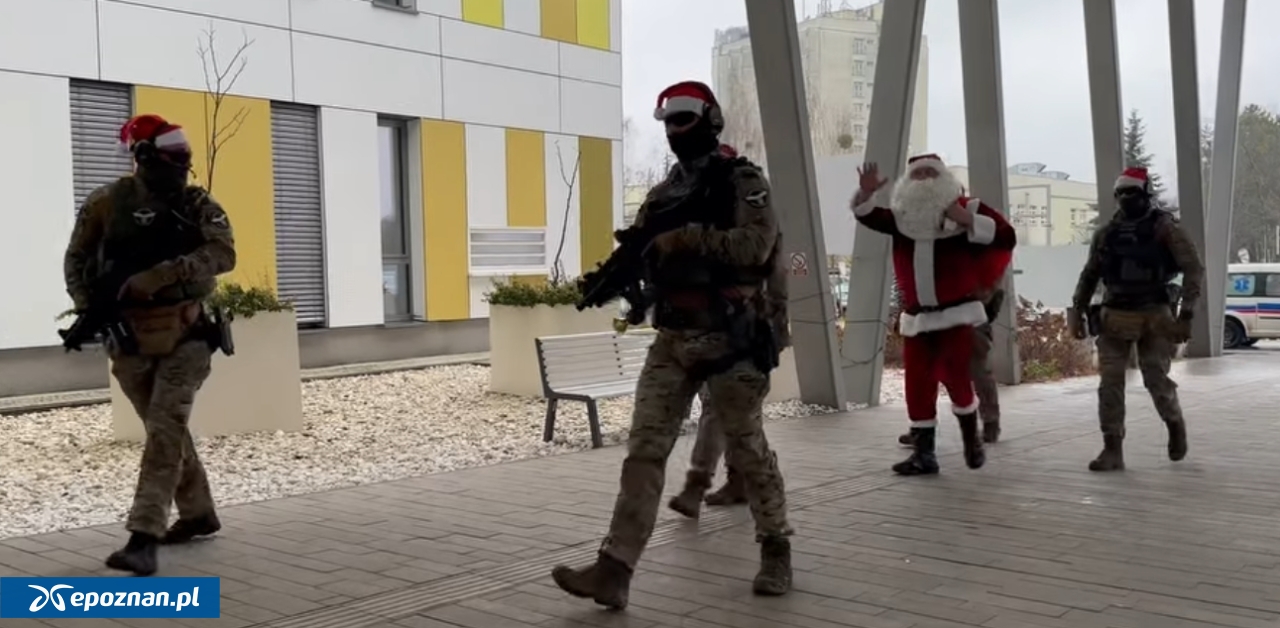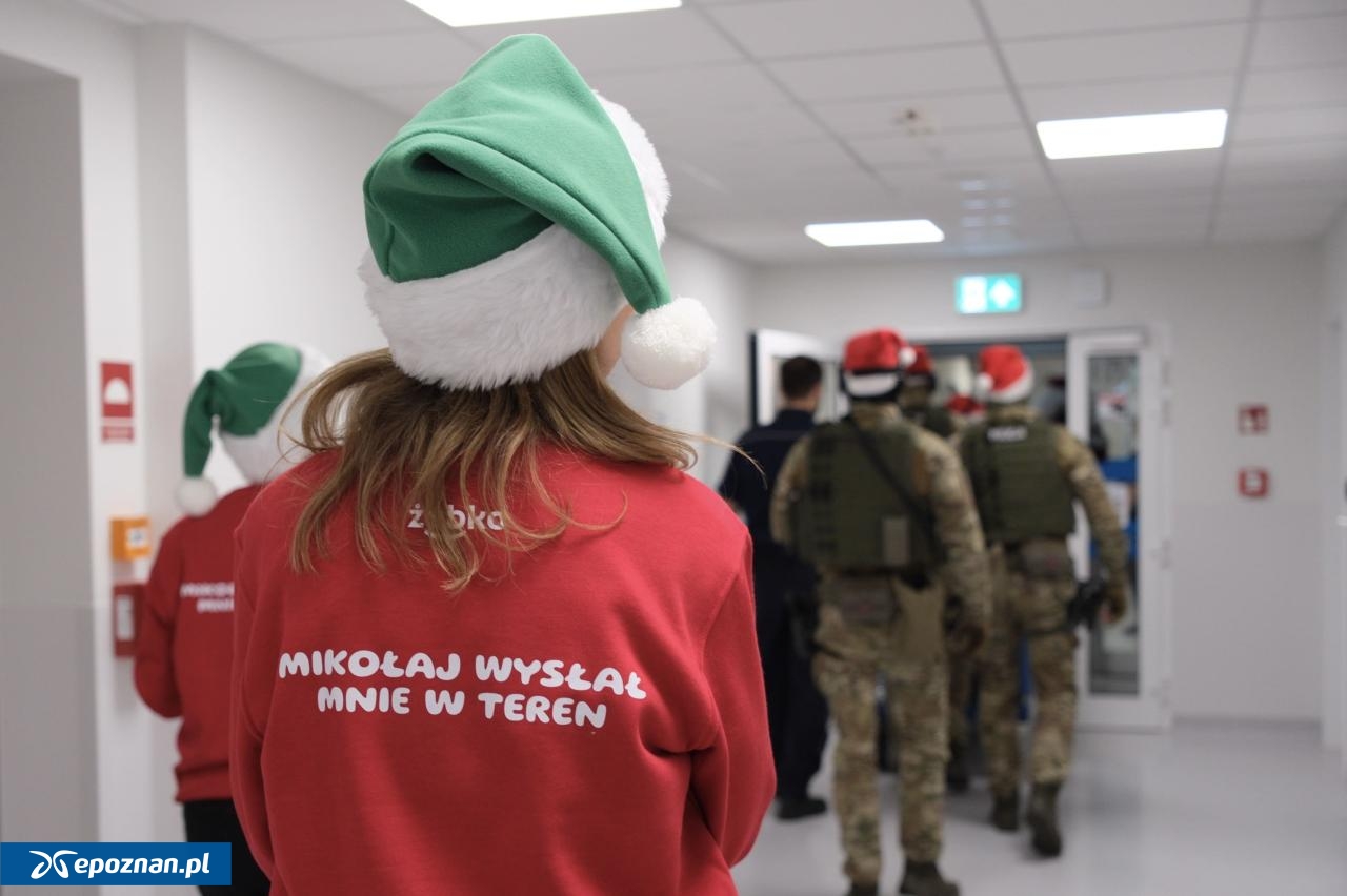 Przed oba szpitale zamiast tradycyjnych sań podjechały... nieoznakowane radiowozy. Wysiadł z nich Mikołaj w asyście "policyjnych" elfów.