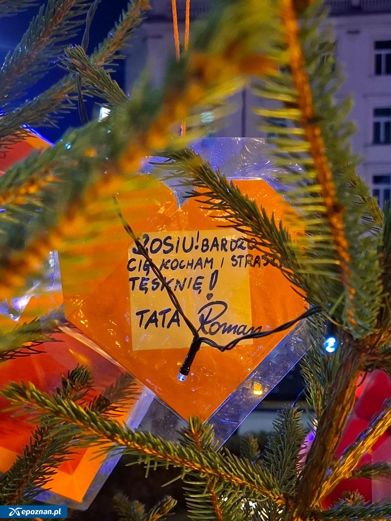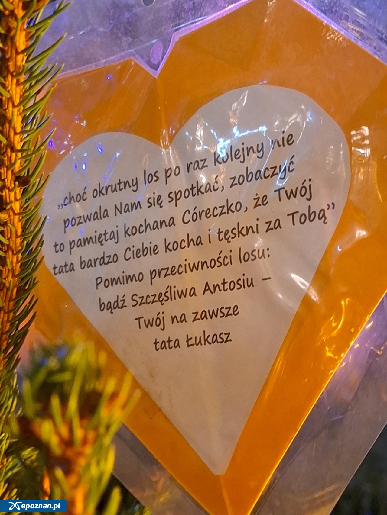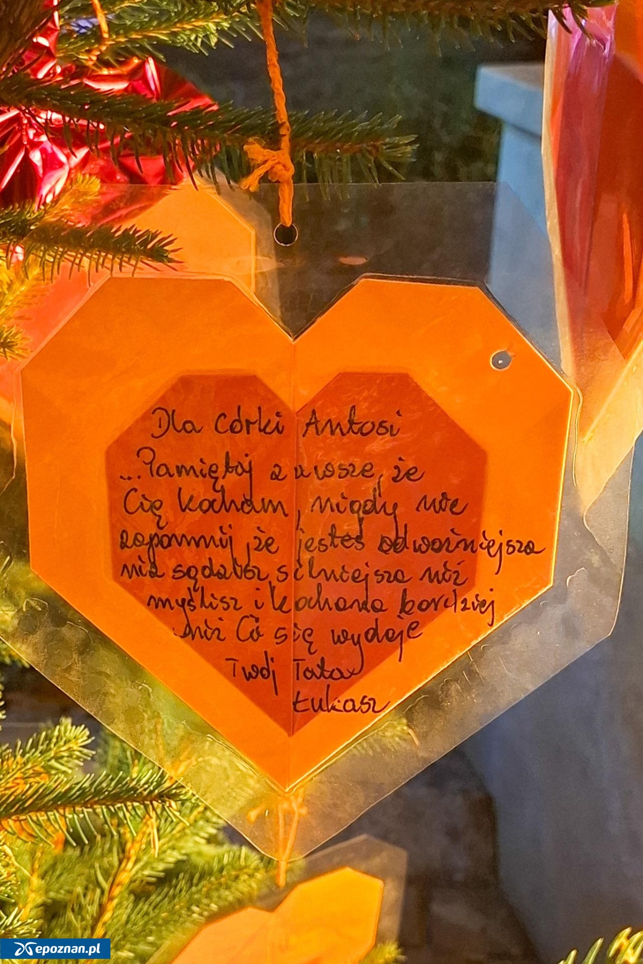 Napisy na serduszkach, powieszonych na choince, to często bardzo osobiste pragnienie spotkania się z dzieckiem lub wyznanie mu ojcowskiej albo matczynej miłości.