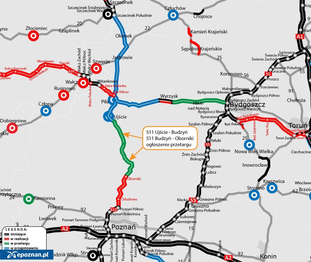 - Do publikacji w Dzienniku Urzędowym UE wysłaliśmy ogłoszenia o przetargach na zaprojektowanie i budowę dwóch odcinków S11: Ujście - Budzyń, Budzyń - Parkowo o łącznej długości 43,1 km, które łącznie stanowią odcinek Ujście - Oborniki - informuje Marcin Kucharczak z Generalnej Dyrekcji Dróg Krajowych i Autostrad.