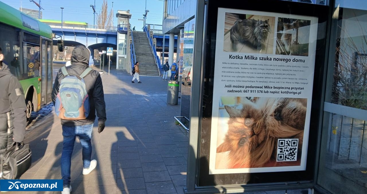 - Ciekawa akcja - ktoś poszukuje nowego domu dla kota za pomocą billboardów przystankowych - napisał do nas Czytelnik. Na zdjęciu widać billboard umieszczony na przystanku autobusowym przy dworcu kolejowym w Poznaniu. Z billboardu można się dowiedzieć, że poszukiwany jest dom dla kociej seniorki - 12-letniej Milki.