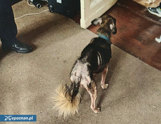 - Widok psa zastanego na miejscu nie pozostawiał złudzeń. Znajdująca się w mieszkaniu młoda suka rasy mieszanej była skrajnie zaniedbana, wychudzona, miała duże braki w sierści, a na ciele stare rany. Pies był także zapchlony. W misce dla niego przeznaczonej znajdowały się stare kości i brudna woda - informuje Agnieszka Zaworska z Komendy Powiatowej Policji w Jarocinie.
