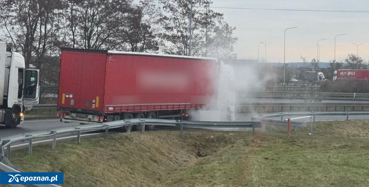 Utrudnienia na węźle Poznań Zachód. Dym z ciężarówki