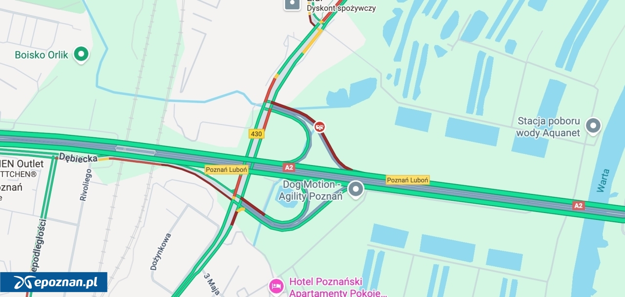 Na łącznicy prowadzącej z A2 w kierunku Poznania od strony Warszawy doszło do awarii ciężarówki. Generalna Dyrekcja Dróg Krajowych i Autostrad podaje, że łącznica jest obecnie zamknięta. Kierowcy jadący A2 od Warszawy, którzy chcieliby zjechać na węźle Luboń do Poznania, muszą jechać dalej - do węzła Komorniki.