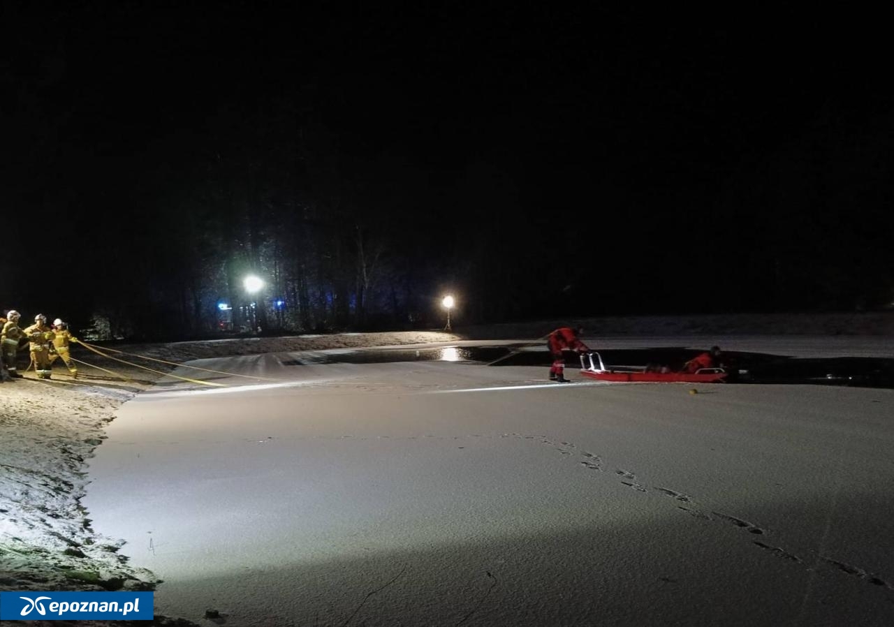 Na prywatnej posesji załamał się lód pod dwiema osobami, które akurat na nim przebywały. Ze wstępnych ustaleń wiadomo, że jest to matka i dziecko.