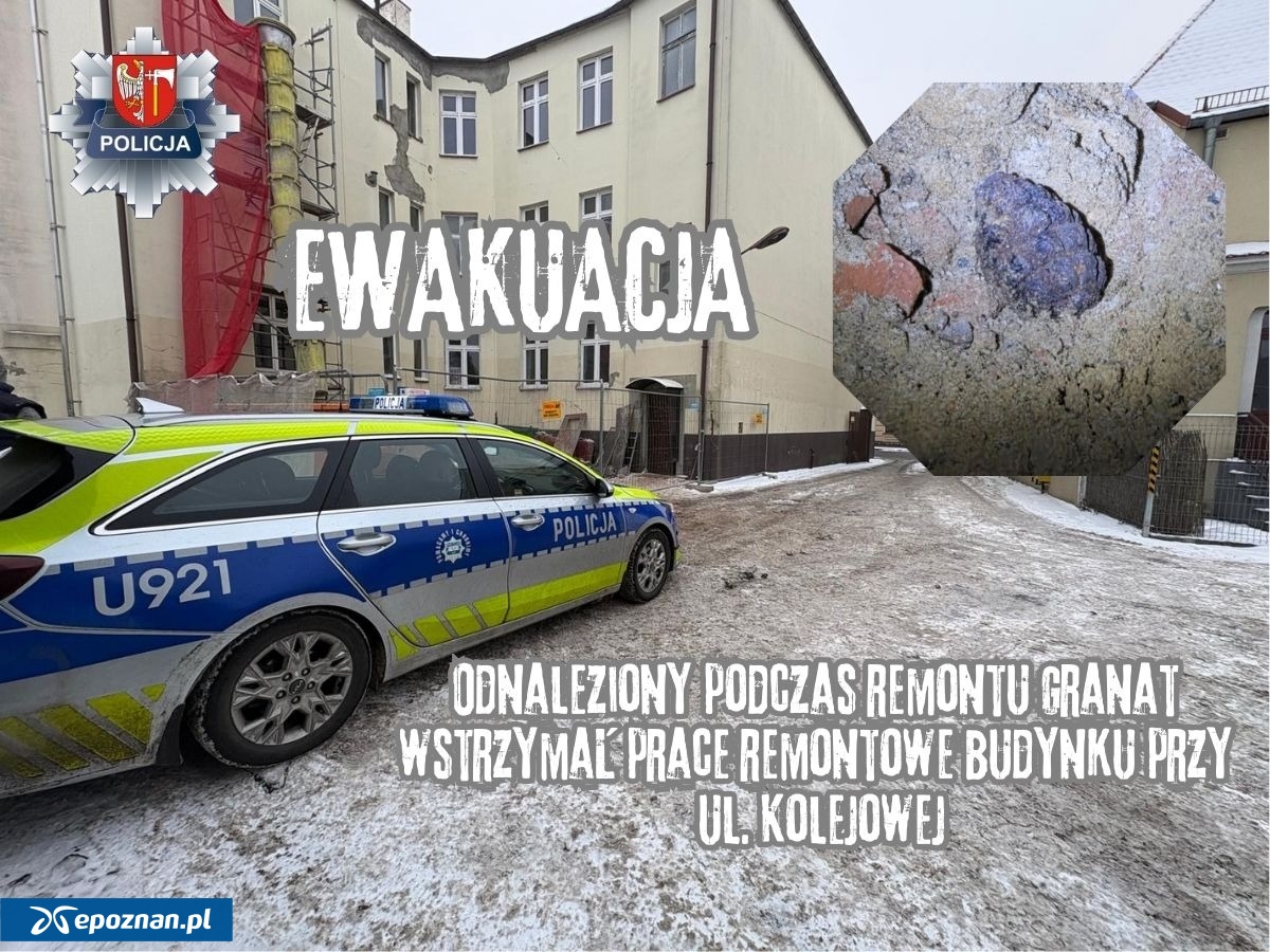 W budynku przy ulicy Kolejowej w Wągrowcu prowadzony jest remont. W jego trakcie ekipa budowlana znalazła przedmiot przypominający granat. - Postanowili nie kontynuować prac i ewakuować ludzi z budynku - podaje wągrowiecka policja.