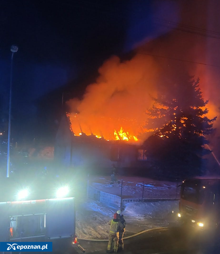 Nocny pożar w Poznaniu. Dach domu w ogniu