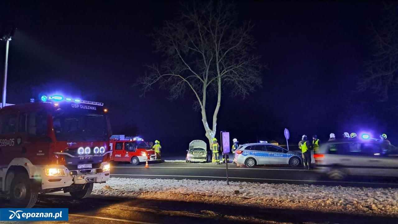 Wypadek na trasie Pniewy-Poznań. Dwie osoby są ranne. Droga jest całkowicie zablokowana