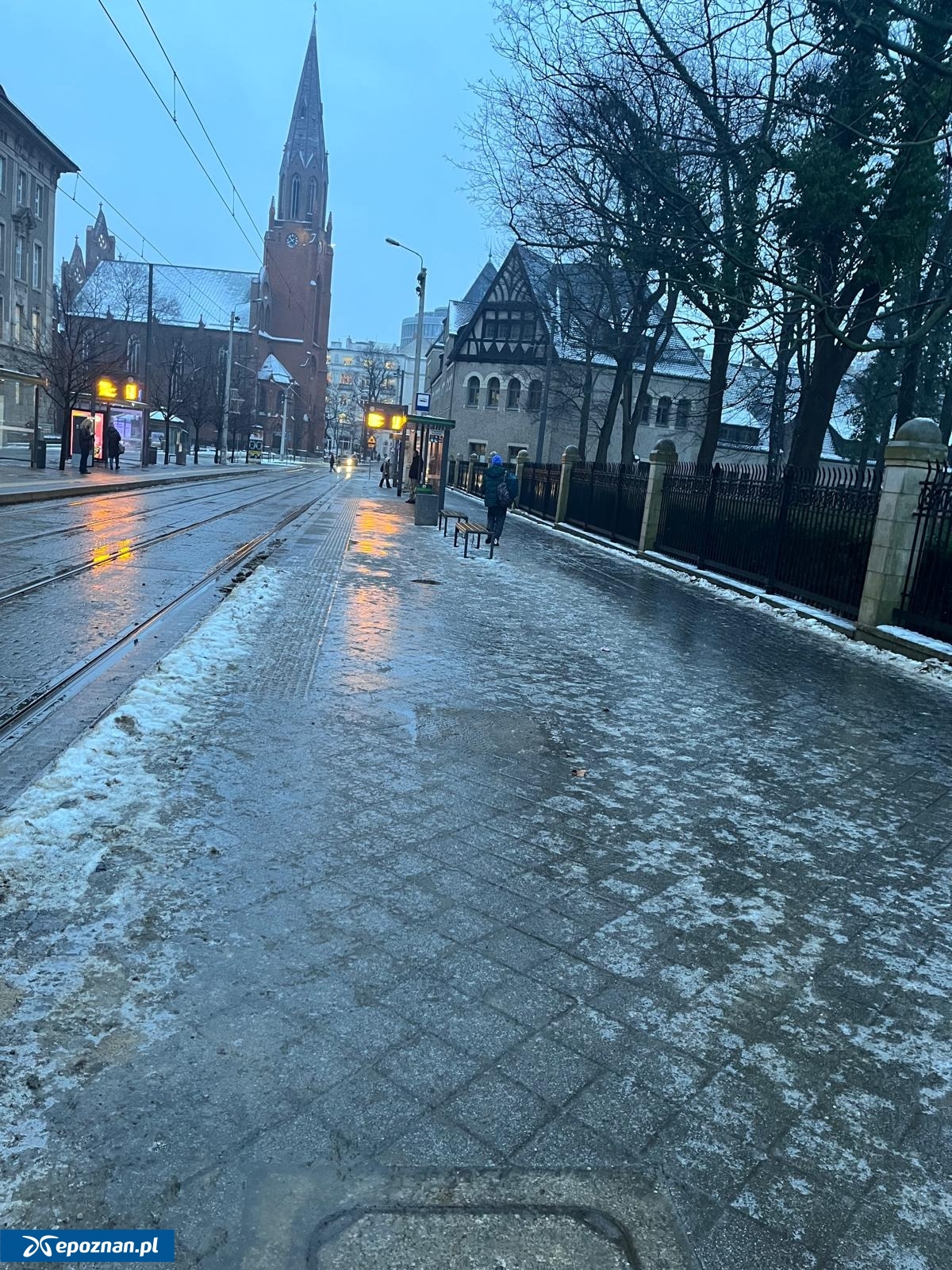 Bardzo ślisko na poznańskich chodnikach. "To jest jakaś kpina"