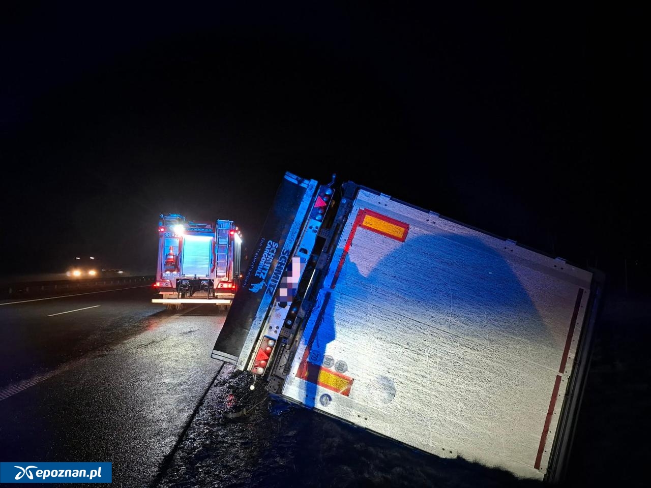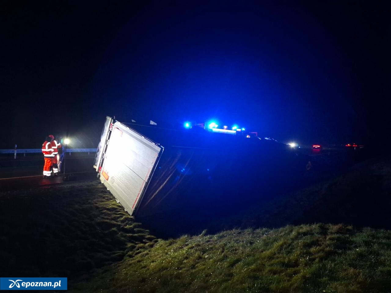 Ciężarówka przewożąca tytoń przewróciła się na S5. Utrudnienia w kierunku Poznania!