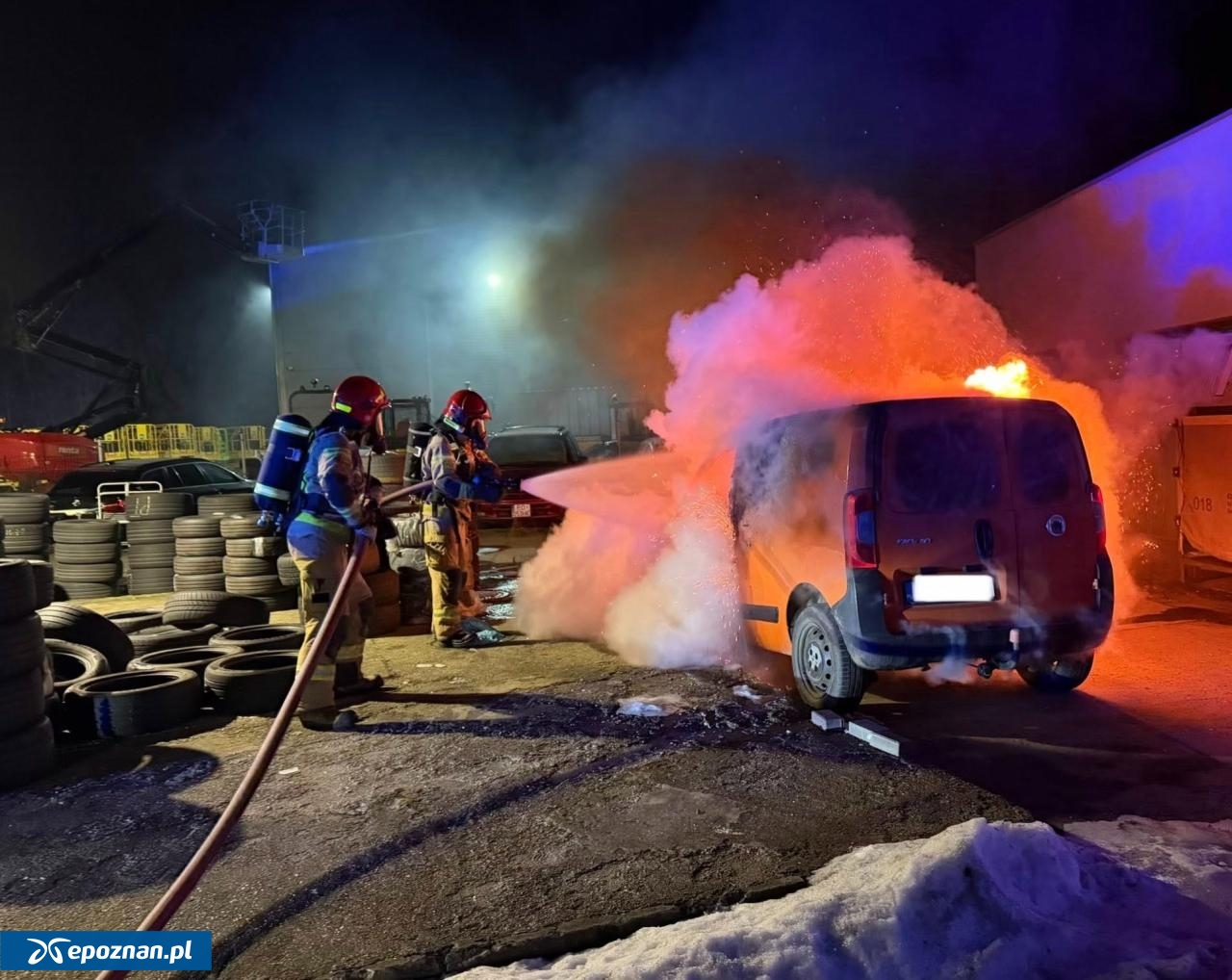 O godzinie 19:00 do Komendy Miejskiej PSP w Poznaniu wpłynęło zgłoszenie o pożarze samochodu na jednej z posesji przy ul. Kowalewickiej. Strażacy zastali na miejscu samochód w płomieniach. Nie było osób poszkodowanych.