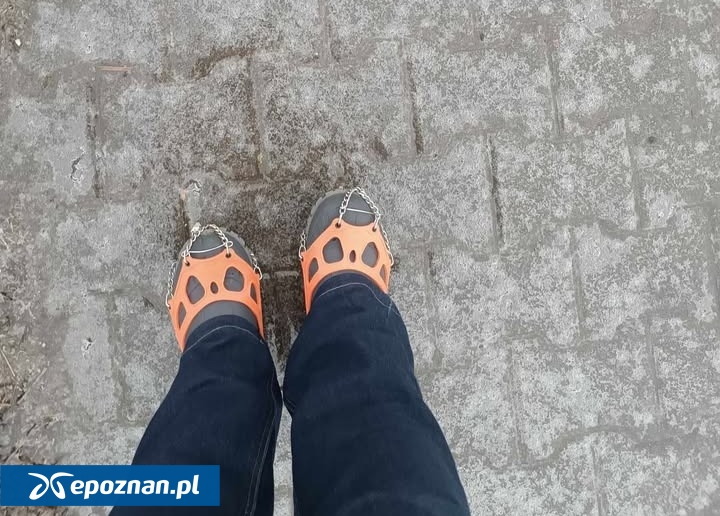 Jeszcze inni wyciągnęli raczki, które teoretycznie w mieście nie powinny być przydatne. Tym razem warunki atmosferyczne sprawiły jednak, że taki ekwipunek okazał się idealny na poznańskie chodniki: