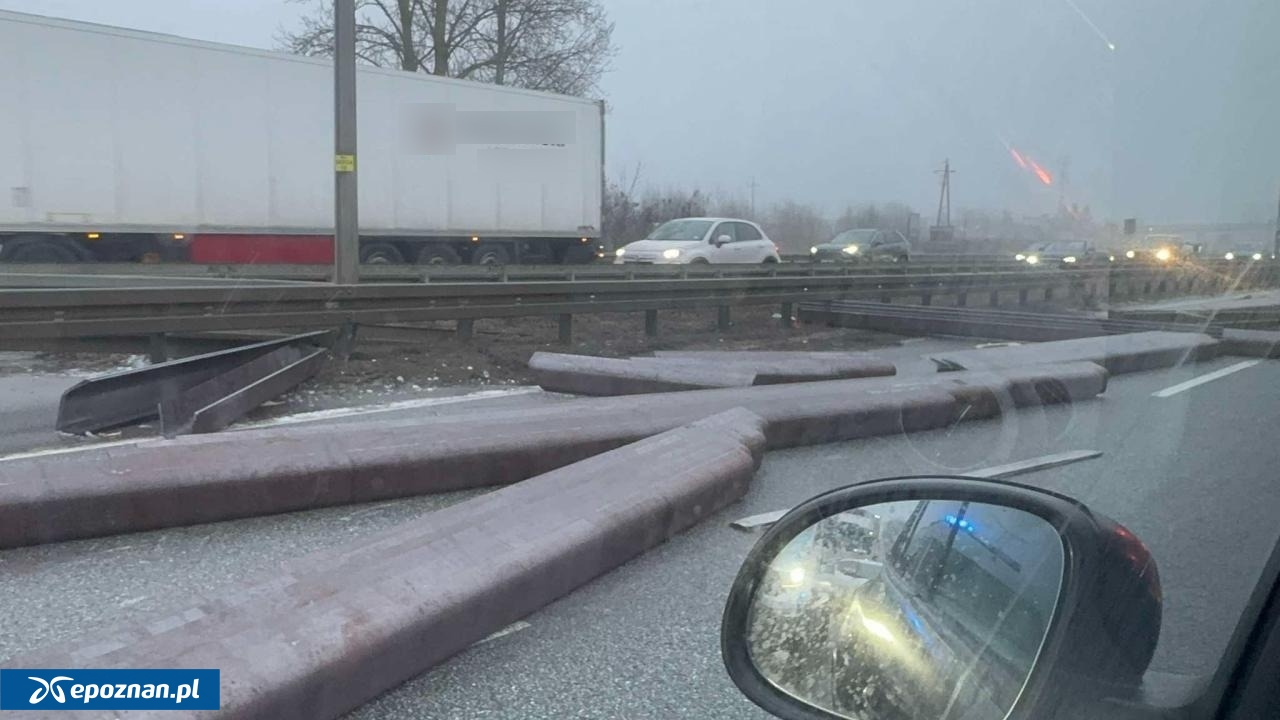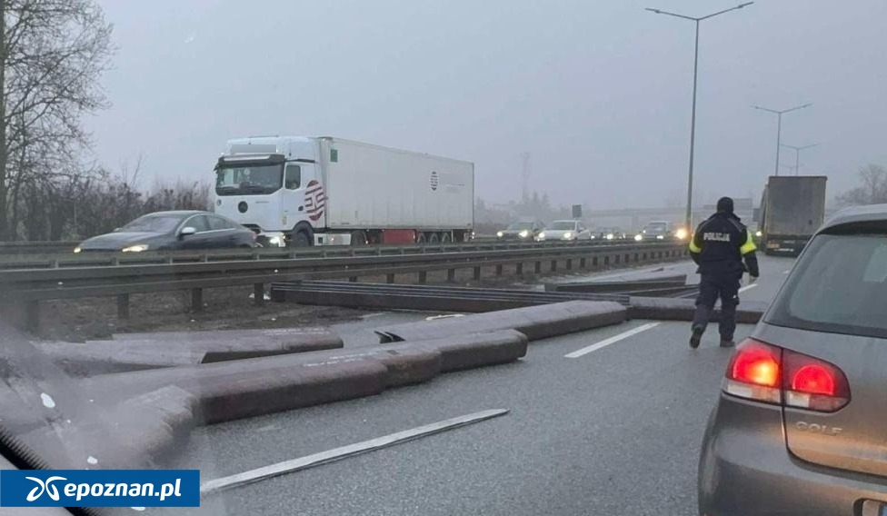 Jak informuje mł. asp. Anna Klój z biura prasowego poznańskiej policji - Zdarzenie miało miejsce o godzinie 15:20, na drodze S11, zjazd na Kórnik. Policjanci wstępnie ustalili, że metalowe elementy przewożone przez pojazd ciężarowy nie zostały prawidłowo zabezpieczone. Gdy ciężarówka znalazła się na łuku drogi, wypadły na jezdnię uszkadzając Toyotę Yaris jadącą również tą drogą, barierę energochłonną i nawierzchnię drogi. Nikt nie ucierpiał w tym zdarzeniu. Aktualnie 2 pasy drogi są nieprzejezdne, ruch odbywa się pasem awaryjnym.
