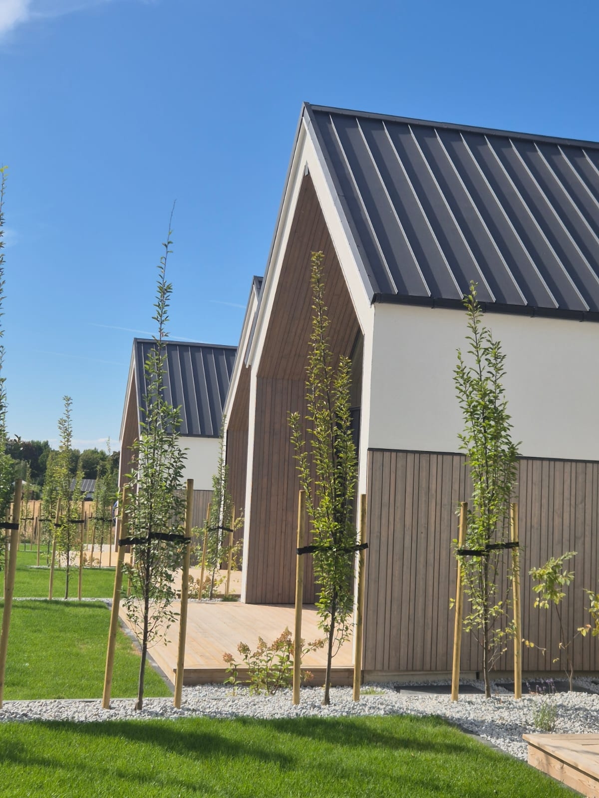 Obecnie realizowany jest II etap budowy domków w stylu skandynawskim, zaprojektowanych z myślą o całorocznym użytkowaniu. Domki powstają w technologii szkieletowej, są ocieplone wełną, dzięki czemu nie występują mostki cieplne, a budynki cechują się bardzo dobrą izolacyjnością. To sprawia, że domki można szybko i efektywnie nagrzać, co znacząco obniża koszty eksploatacji poza sezonem letnim.