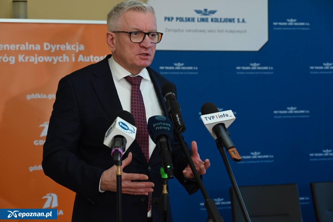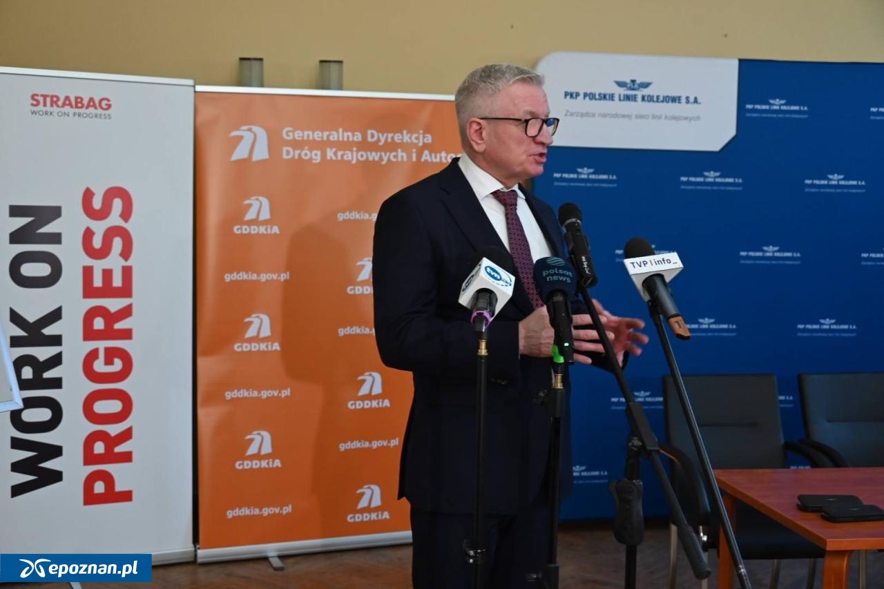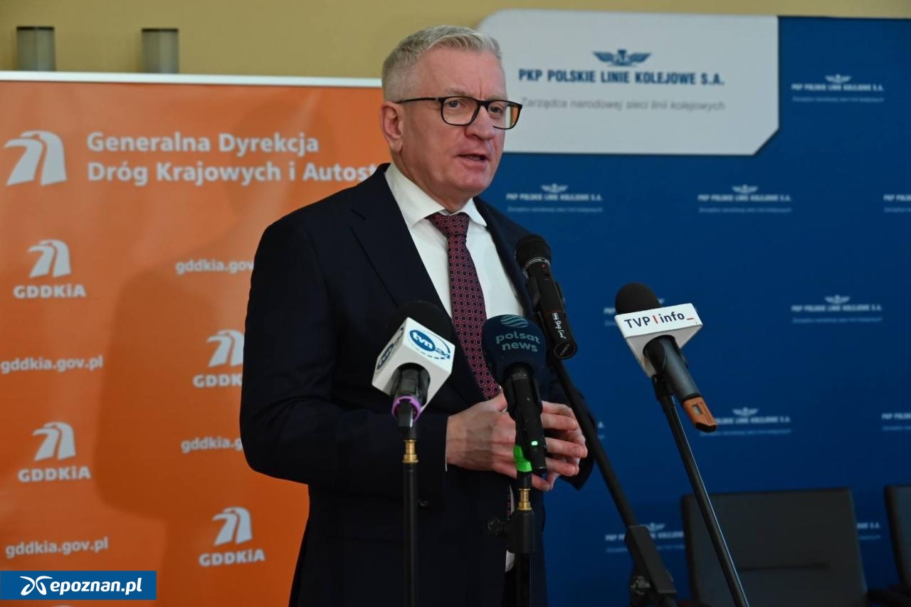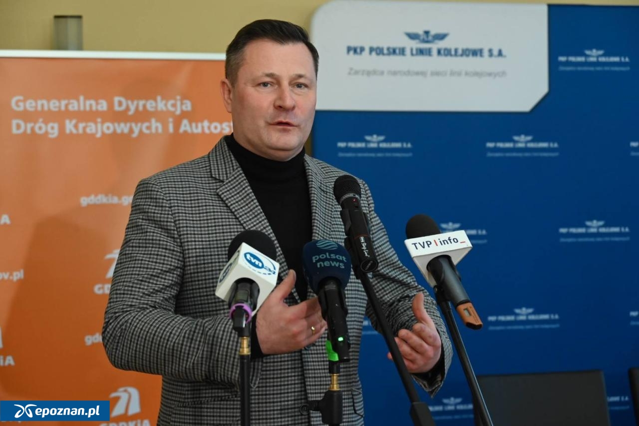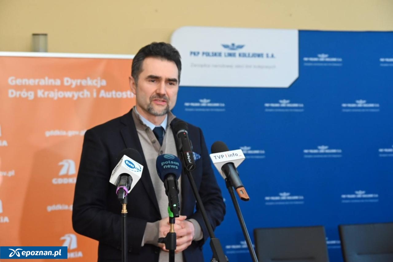 - Poznań Główny to blisko 80 tysięcy pasażerów dobowo, według danych za 2025 rok - mówił Piotr Malepszak, wiceminister infrastruktury. - 594 pociągi przejeżdżające przez tę stację każdego dnia. Perspektywa, że już w marcu tych pociągów będzie ponad 600. Realnie w roku 2027, 2028 zbliżymy się do 700 pociągów dobowo i szybko pójdziemy w kierunku 100 tysięcy pasażerów dobowo - zaznaczył. - Musimy myśleć o tym miejscu pod kątem zupełnie nowej jakości, której nie daje nam "chlebak", nie daje nam niefunkcjonujący już dworzec wyspowy, który należałoby jak najszybciej zrównać z ziemią. I nie daje nam układ przemieszczania się na odległości setek metrów pasażerów od "chlebaka" do peronów.