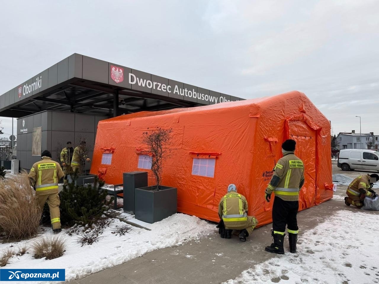 W poniedziałek gmina Oborniki poinformowała, że dzięki współpracy powiatu obornickiego, Powiatowej Państwowej Straży Pożarnej w Obornikach oraz Straży Miejskiej i druhów OSP, na dworcu autobusowym, w sąsiedztwie dworca PKP, stanął podgrzewany namiot. Jest to inicjatywa gminy Oborniki.