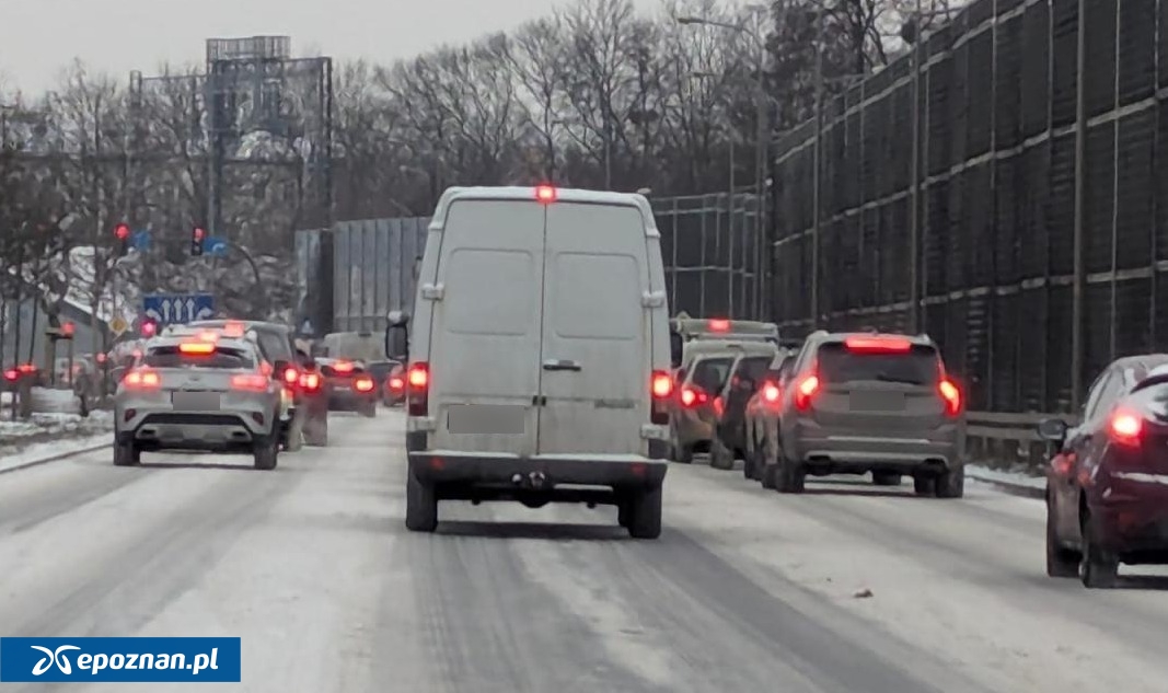 Wielkie korki w całym mieście. Przez problemy na rondzie Śródka i trudne warunki na drogach