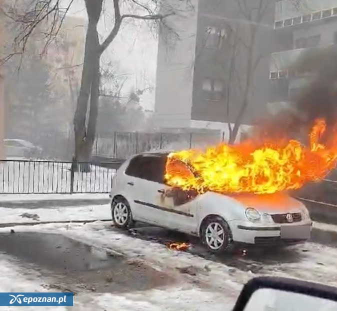 Pożar auta w Poznaniu i utrudnienia dla kierowców