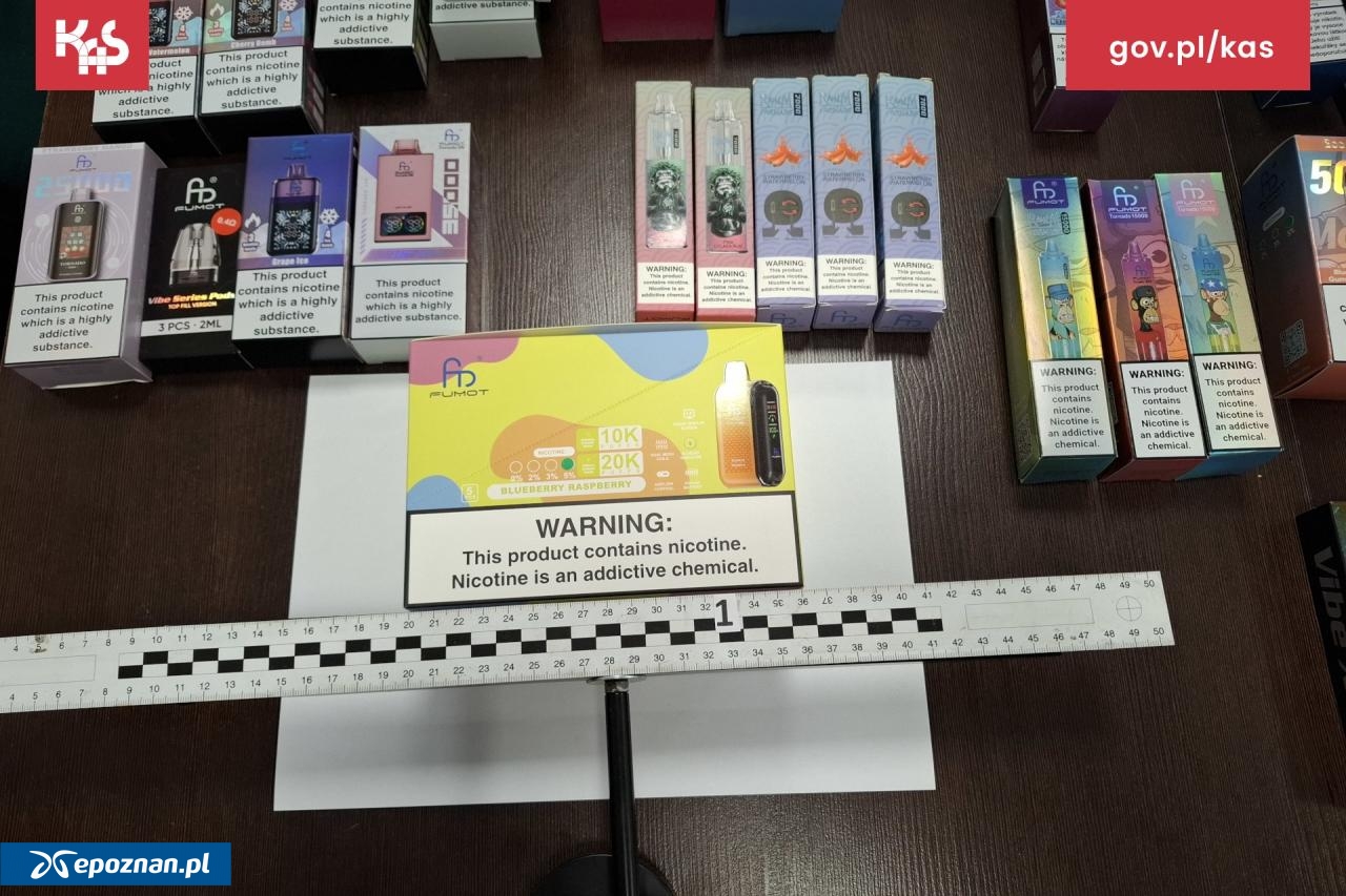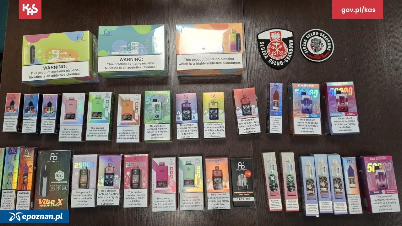 Akcja miała miejsce 3 lutego. Funkcjonariusze Wielkopolskiego Urzędu Celno-Skarbowego w Poznaniu przeprowadzili kontrolę w jednej z firm kurierskich pod kątem nielegalnych wyrobów akcyzowych. Podczas przeszukania sortowni pies służbowy "Panda" oznaczył 16 przesyłek kurierskich. Szczegółowa rewizja paczek zakończyła się wykryciem 2533 szt. nielegalnych wyrobów akcyzowych zawierających łącznie 50769 ml płynów do e-papierosów - mówi Małgorzata Spychała-Szuszczyńska z Izby Administracji Skarbowej w Poznaniu.