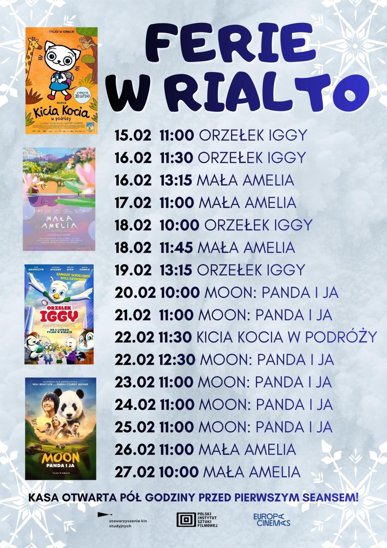 Pokazy w ramach cyklu odbywają się w czasie ferii zimowych, głównie w godzinach przedpołudniowych. Co ważne, przed wybranymi seansami zaplanowano krótkie warsztaty i animacje dla dzieci, które sprawią, że wizyta w Rialto stanie się czymś więcej niż tylko filmem - będzie prawdziwym feriowym wydarzeniem.