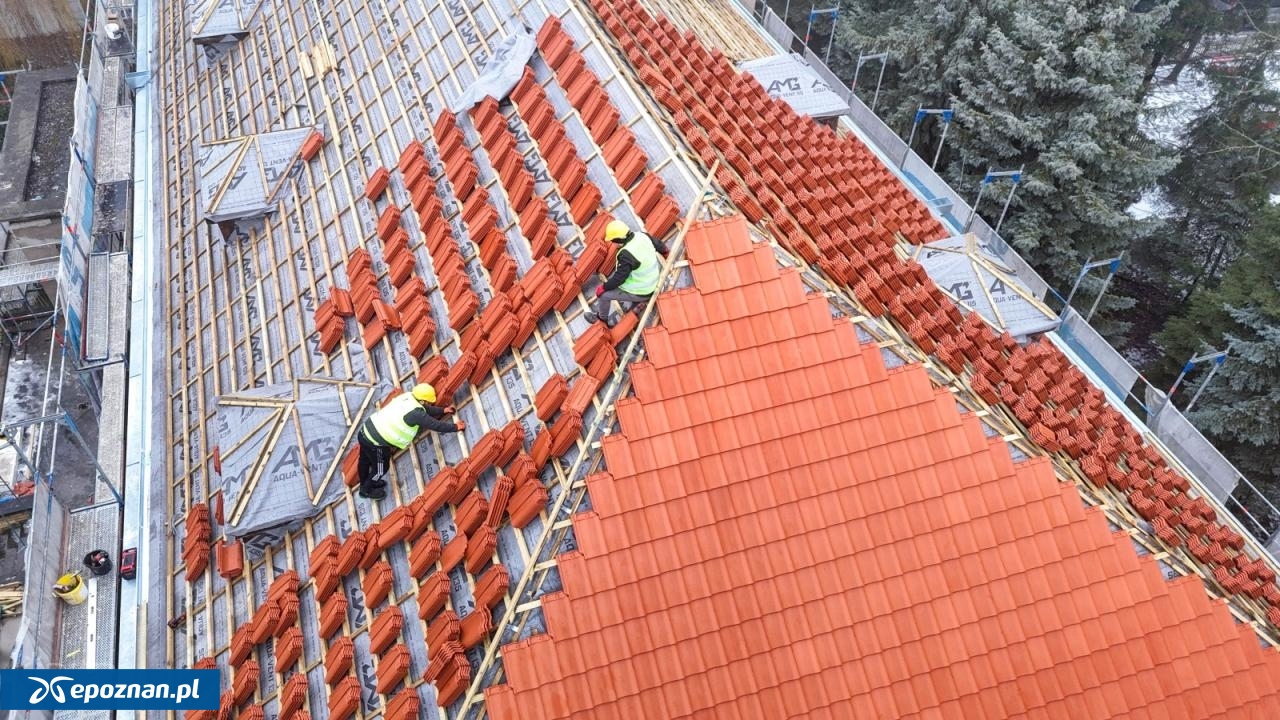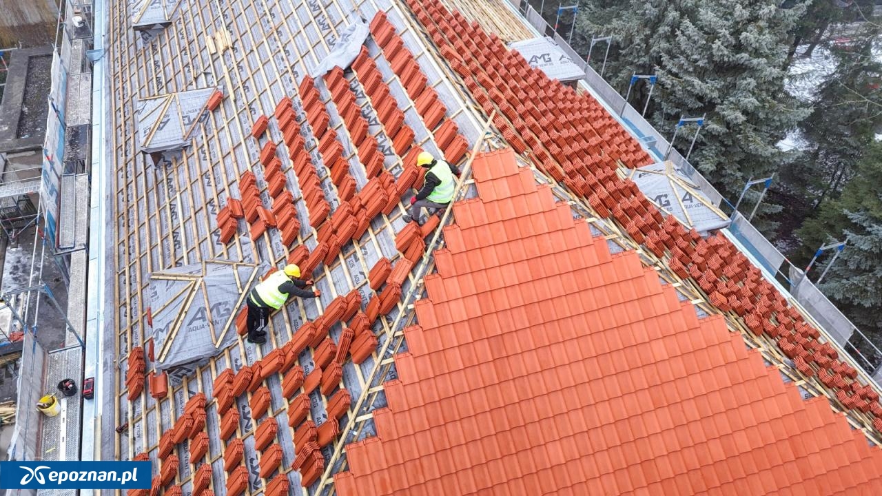 "Pierwsze roboty budowlane rozpoczęły się pod koniec ubiegłego roku. Do tej pory wykonano membranę i łaty dachu, gotowa jest instalacja odgromowa oraz docieplono gzyms. Zaawansowane są również prace związane z obróbkami blacharskimi i mocowaniami rynien. W ostatnim czasie rozpoczął się montaż izolacji, która ociepli poddasze" - mówi Tomasz Płóciniczak, wiceprezes spółki Poznańskie Inwestycje Miejskie.