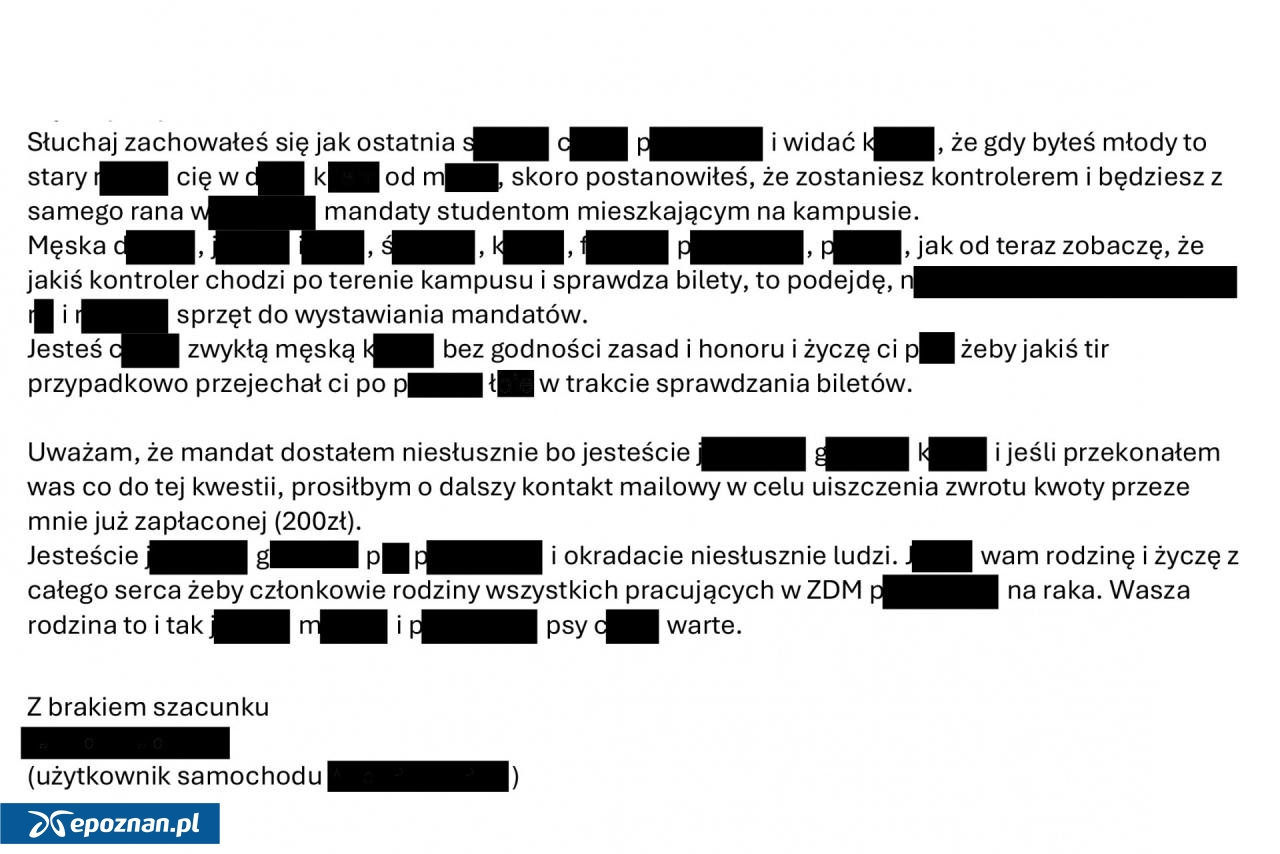 Do Zarządu Dróg Miejskich w Poznaniu wpłynęła wiadomość od studenta jednej z poznańskich uczelni dotycząca wezwania do uiszczenia opłaty dodatkowej za nieopłacone parkowanie w Strefie Płatnego Parkowania. Zamiast standardowego odwołania lub prośby o wyjaśnienie, korespondencja zawierała wulgarne treści oraz groźby przemocy wobec pracowników ZDM.