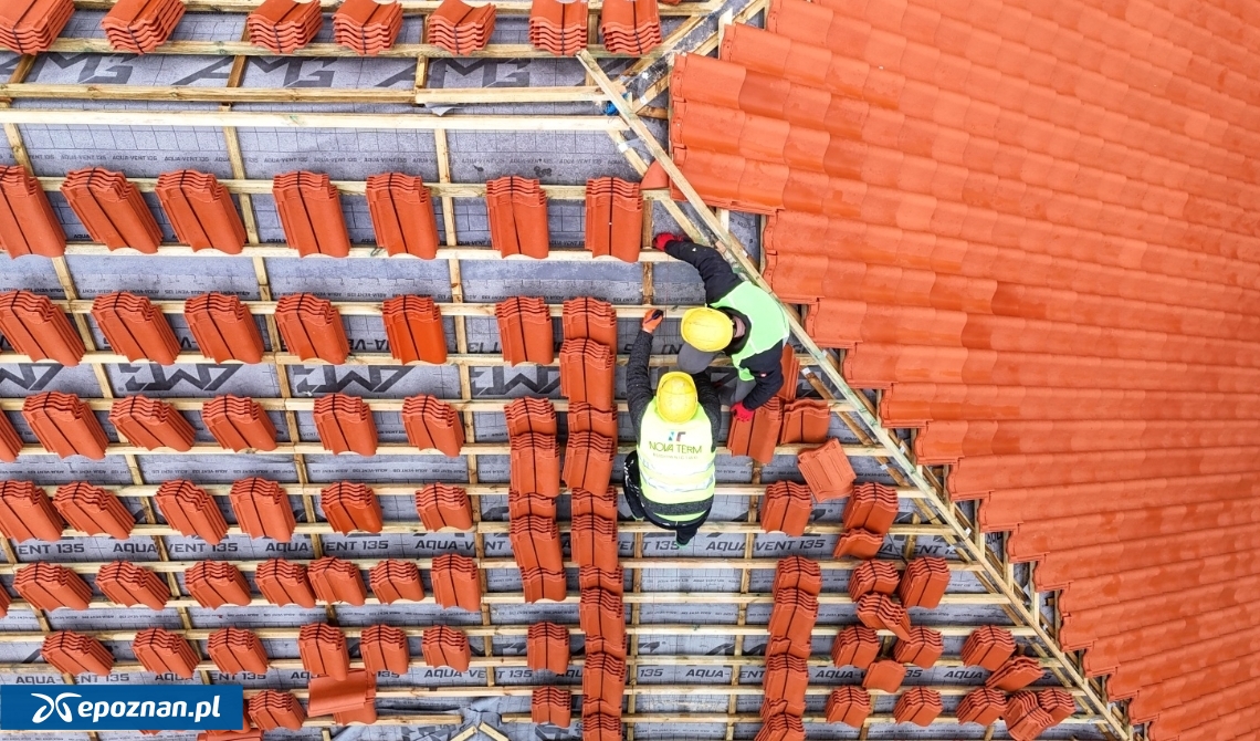 - Pierwsze roboty budowlane rozpoczęły się pod koniec ubiegłego roku. Do tej pory wykonano membranę i łaty dachowe, gotowa jest instalacja odgromowa oraz docieplono gzyms. Zaawansowane są również prace związane z obróbkami blacharskimi i mocowaniami rynien. W ostatnim czasie rozpoczął się montaż izolacji, która ociepli poddasze - powiedział Tomasz Płóciniczak, wiceprezes spółki Poznańskie Inwestycje Miejskie.