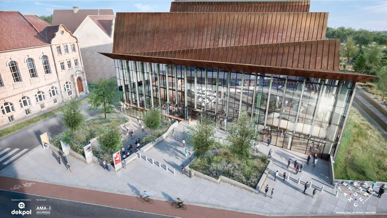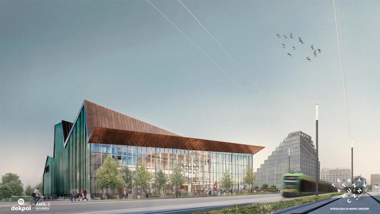 Dziś przedstawiciele Teatru Muzycznego pokazali wizualizacje budynku, który powstanie u zbiegu ulic Święty Marcin i Skośnej w Poznaniu. "Nowa siedziba to większe możliwości artystyczne: lepsze warunki do przygotowania spektakli na najwyższym, międzynarodowym poziomie. Dzięki nowemu budynkowi rozwiniemy zaplecze techniczne i realizacyjne, dzięki czemu będziemy mogli tworzyć jeszcze bardziej wymagające produkcje i zapewnić naszym widzom jak lepsze doświadczenie"- podkreślają.