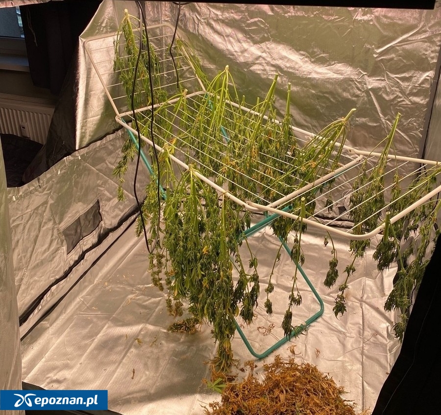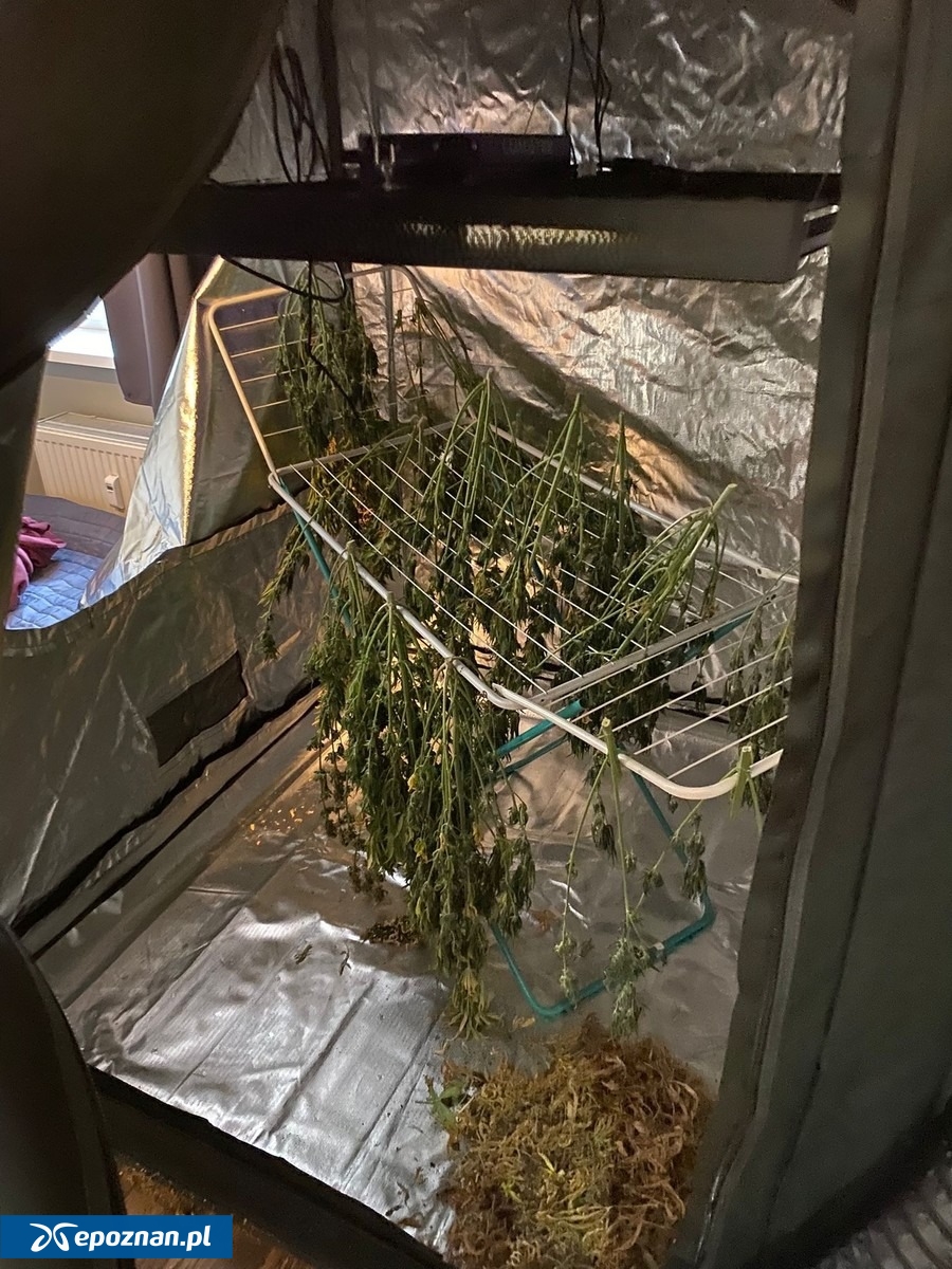 Policjanci z Komendy Miejskiej Policji w Poznaniu w ostatnim czasie przeprowadzili działania na terenie gminy Brodnica w powiecie śremskim. Z ich ustaleń wynikało, że na prywatnej posesji może być prowadzona uprawa marihuany. - Do działań, po wcześniejszych ustaleniach, włączyli się kryminalni z Komendy Powiatowej Policji w Śremie. Na miejscu funkcjonariusze odkryli specjalnie przygotowany namiot wyposażony w wysokiej klasy osprzęt, mogący służyć do uprawy roślin, które w świetle polskiego prawa są zakazane w celach prywatnych i komercyjnych. Rośliny były już ścięte i znajdowały się w fazie suszenia - podaje mł. asp. Dawid Kostrzewa ze śremskiej policji.