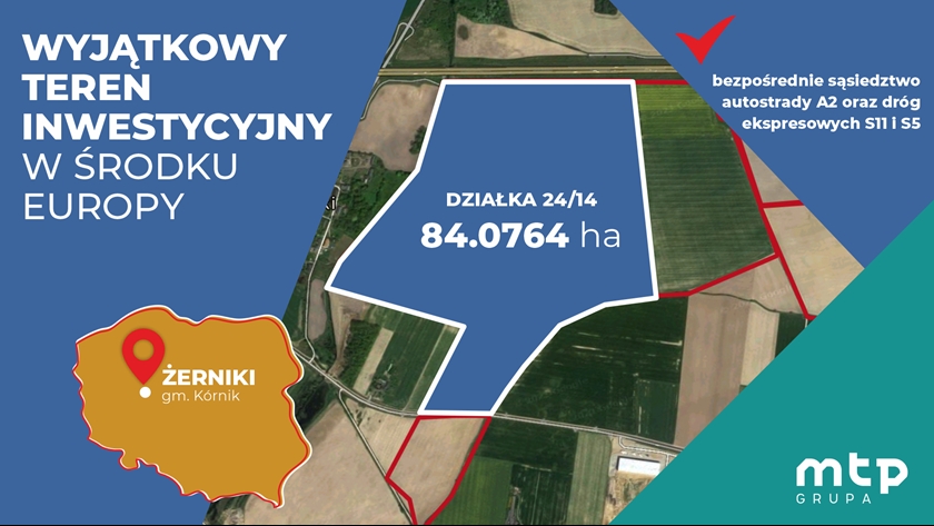 Chodzi o trzy działki. Jedna o powierzchni 84,0764 ha znajduje się w Żernikach (gm. Kórnik). Cena wywoławcza Działki 24/14 wynosi 190.000.000,00 zł netto. Warunkiem uczestnictwa w przetargu jest wpłata wadium w wysokości 5% ceny wywoławczej netto, tj. w kwocie 9.500.000,00 zł.