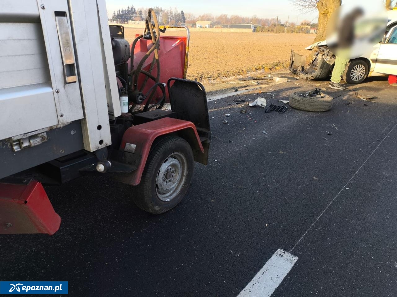 - Około 8:20 doszło do zdarzenia drogowego na drodze wojewódzkiej 190. Na odcinku drogi w Łaziskach wykonywane były prace drogowe związane z porządkowaniem i usuwaniem gałęzi. W pojazd z rębakiem znajdujący się na jezdni uderzyła 50-letnia kierująca samochodem Citroen. Przy maszynie stał pracownik, który wykonywał prace dla WZDW. Został on potrącony - przekazała wągrowiecka policja.