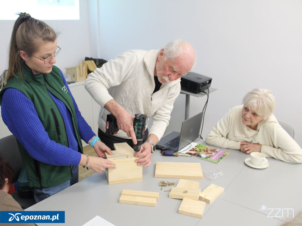 Podczas spotkania seniorki i seniorzy poznali wiele ciekawostek na temat budek lęgowych. Dowiedzieli się, kto je zaprojektował, jakie są ich rodzaje oraz jacy inni lokatorzy mogą w nich zamieszkiwać. Specjalistka ds. edukacji przyrodniczej opowiedziała także o budowie budek lęgowych, sposobach korzystania z nich przez ptaki, konieczności ich czyszczenia, dezynfekcji i impregnacji, a także o zasadach prawidłowego wieszania ich na drzewach.