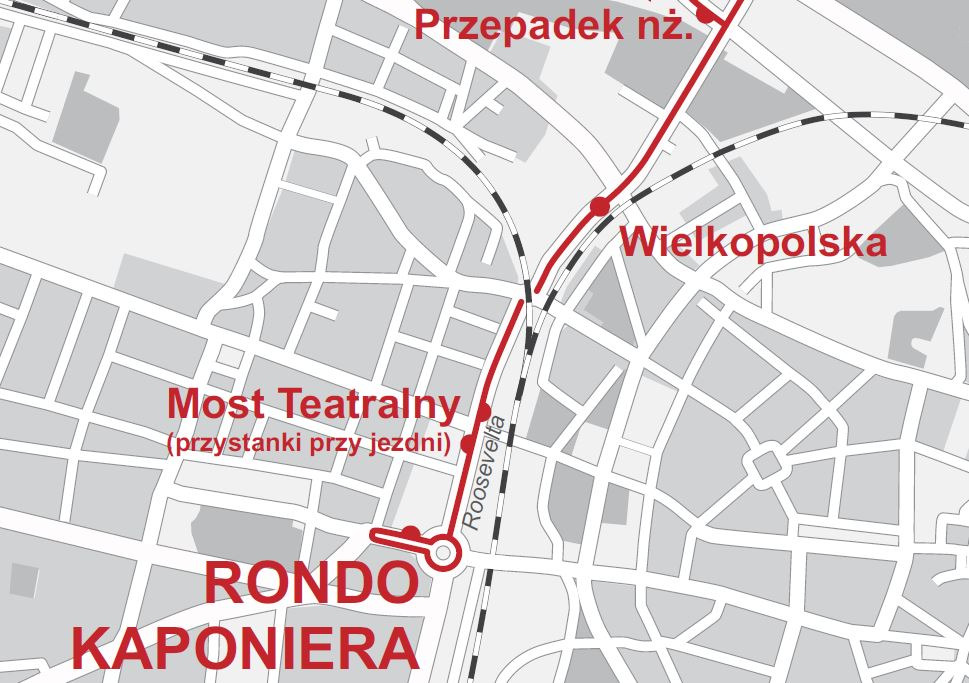 "Tramwaje linii nr 201 odjeżdżające o godz. 5:01 i 5:31 z pętli Unii Lubelskiej dojadą tylko do Ronda Kaponiera - dalsza podróż wzdłuż trasy PST możliwa będzie autobusem linii T12 (pasażerowie chcący skorzystać z tramwaju linii nr 201 o godz. 5:29 i 5:59 na przystanku Dworzec Zachodni w kierunku Os. Sobieskiego proszeni są o skorzystanie z autobusów linii nr 213, 218 lub 223 z przystanku Dworzec Zachodni do Ronda Kaponiera i stamtąd autobusem linii T12 do Os. Sobieskiego)"- dodaje rzecznik.