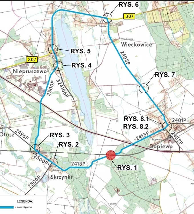 "Przejazd będzie zamknięty od środy 4 marca od godz. 07:00 do piątku 6 marca do godz. 22:00 oraz w niedzielę 15 marca od godz. 16:00 do 22:00"- informują urzędnicy z Dopiewa. "Objazd zostanie poprowadzony zgodnie z załączonym schematem przez Dopiewo, Więckowice oraz Niepruszewo"- dodają.