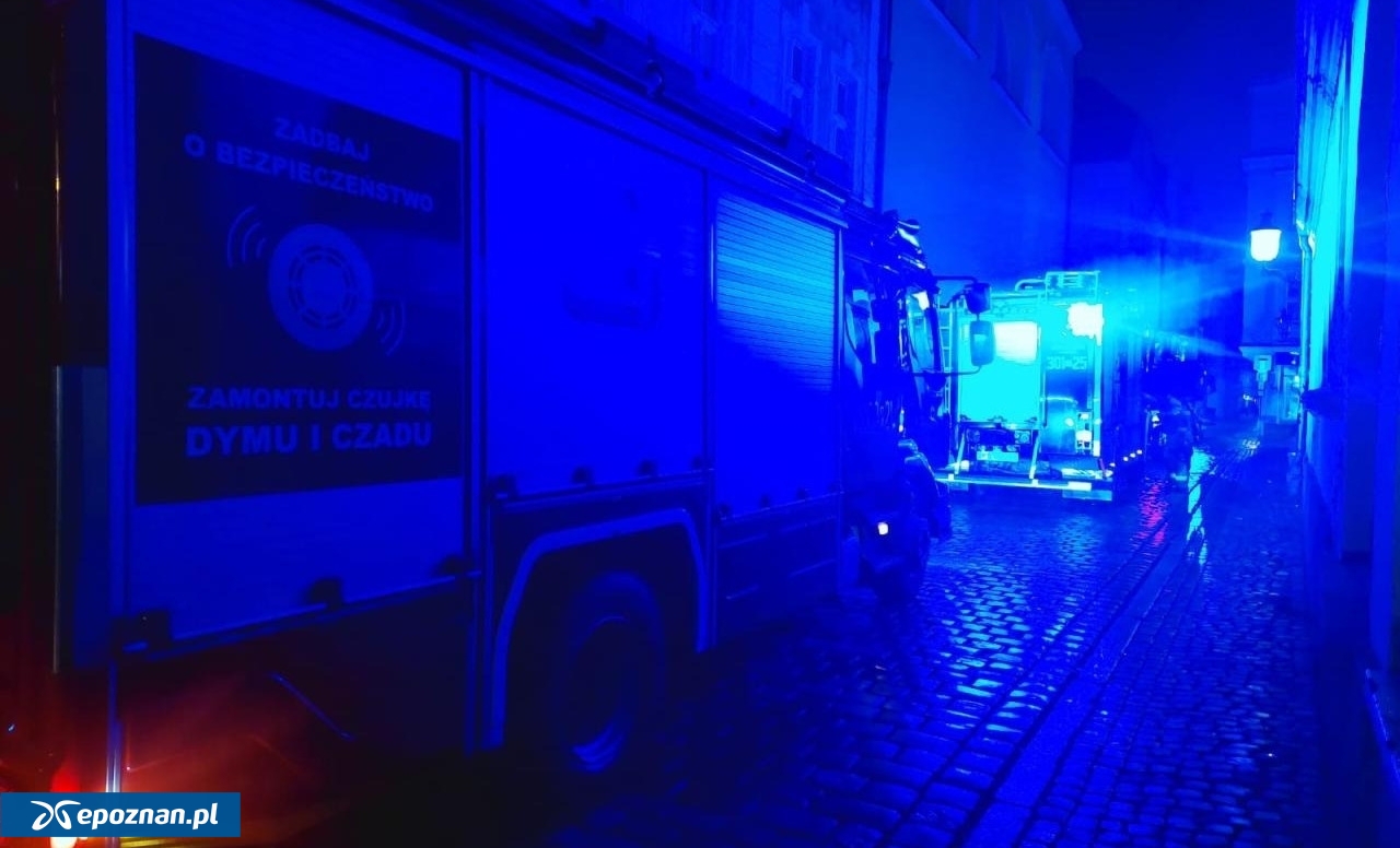 Nocny pożar w kamienicy w centrum Poznania. Dwóch strażaków trafiło do szpitala