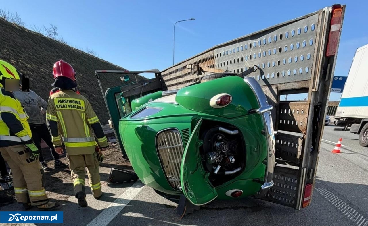 - Dziś kilka minut przed godziną 12:00 interweniowaliśmy na Autostradzie A2 w kierunku Warszawy, gdzie doszło do zdarzenia, w którym brały udział 3 pojazdy. Jeden z nich przewoził kolejny pojazd. Ruch odbywał się płynnie dwoma pasami ruchu. Na miejscu działań także dwa zastępy ze Szkoły Aspirantów PSP Poznań, Zespół Ratownictwa Medycznego, obsługa autostrady - poinformowała Ochotnicza Straż Pożarna Luboń.