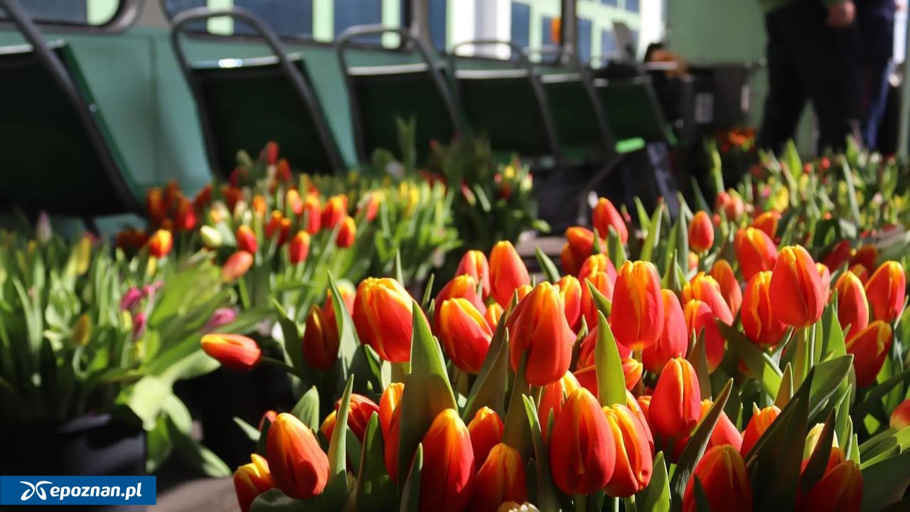 Pracownicy MPK Poznań wręczą paniom spotkanym na przystankach półtora tysiąca tulipanów. W ten sposób - już tradycyjnie - w stolicy Wielkopolski świętowany będzie Dzień Kobiet.