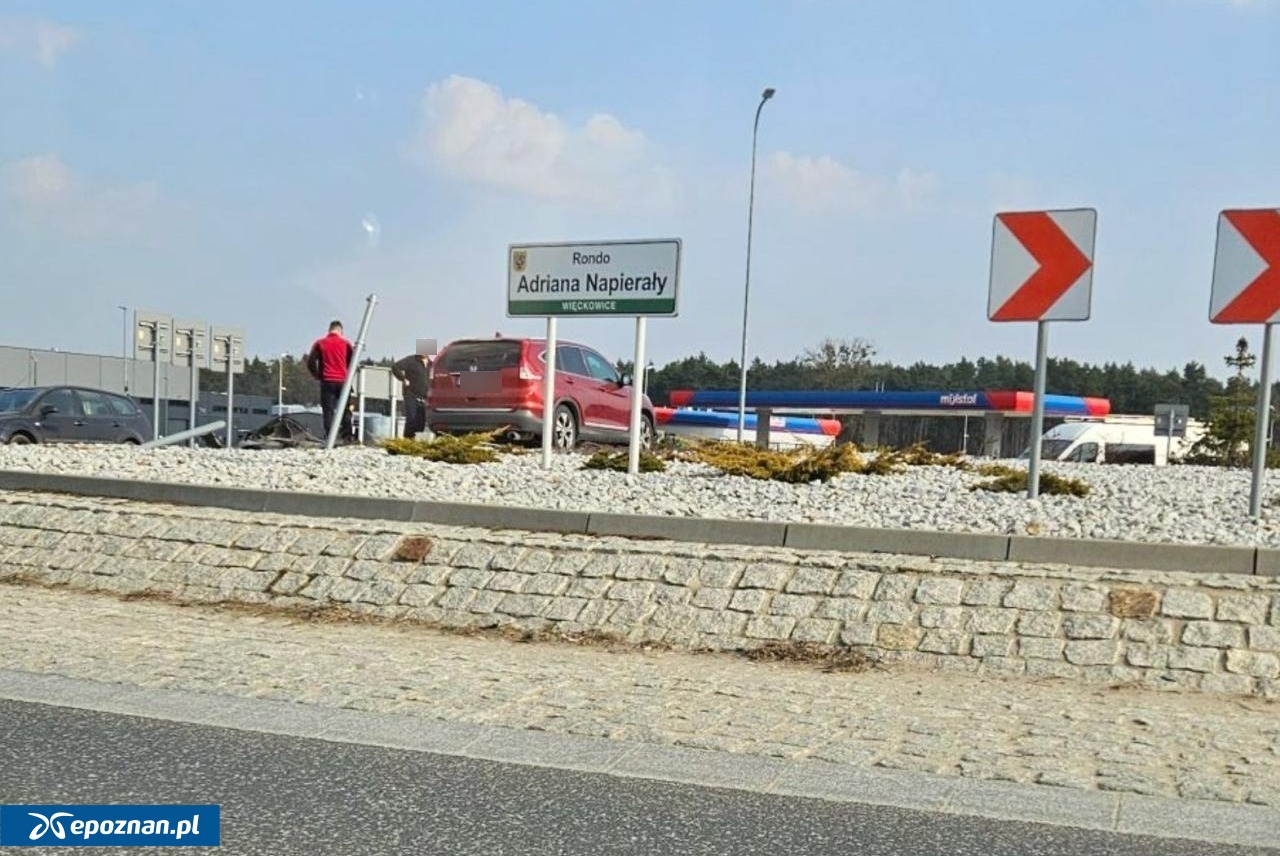 Auto utknęło na środku ronda pod Poznaniem. Kierowca zasłabł za kierownicą